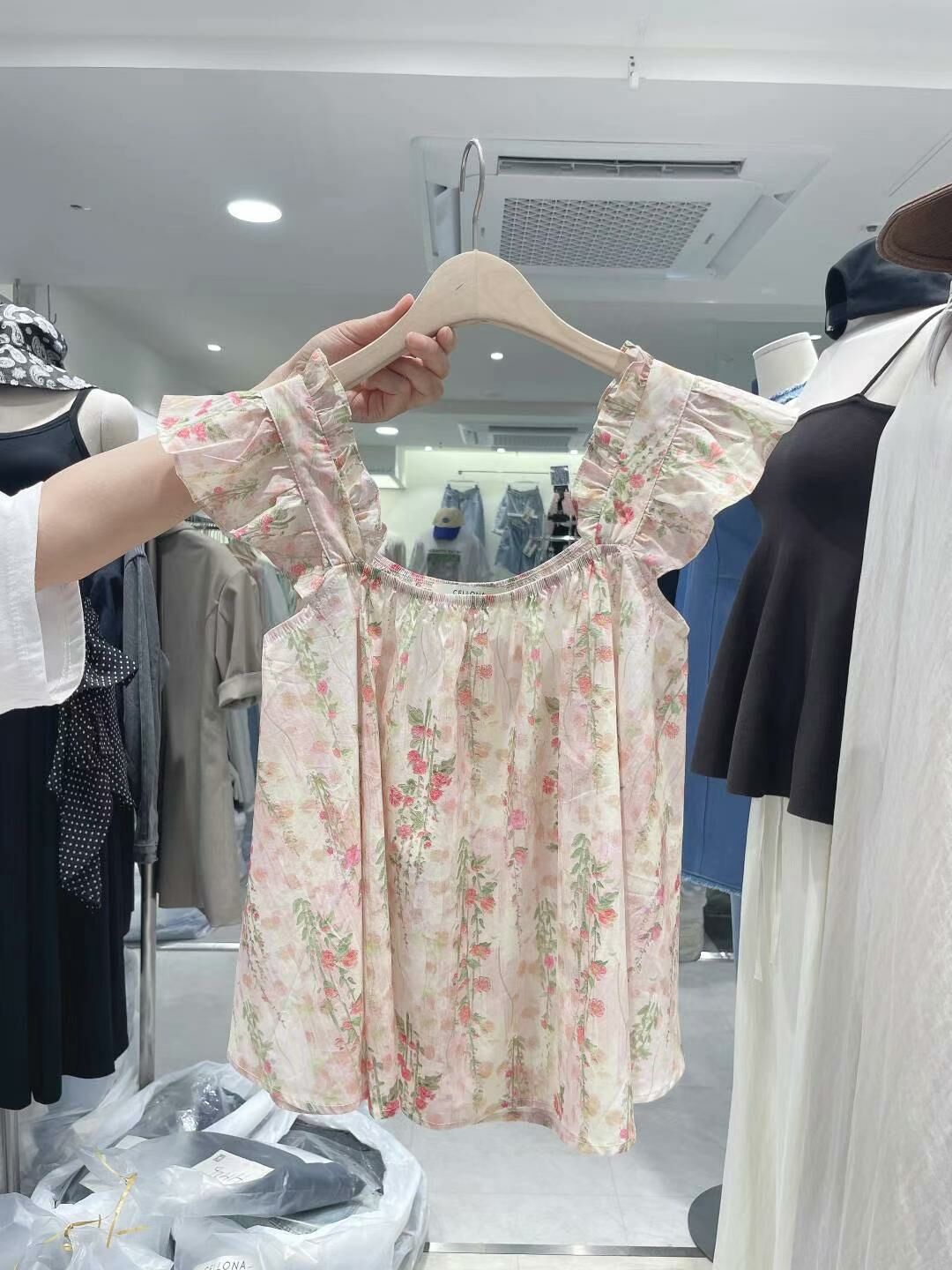 TOP#14389🤎淡粉碎花上衣