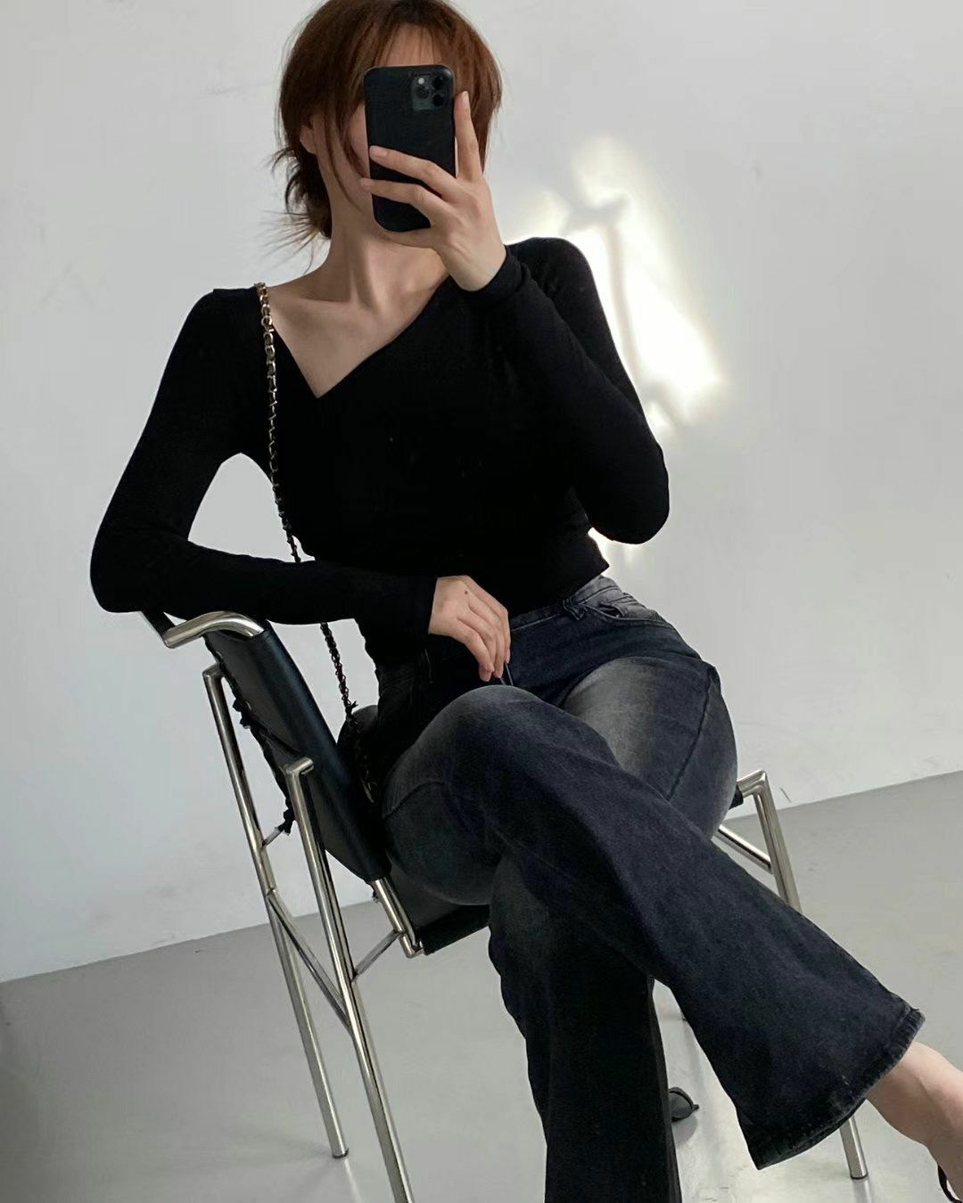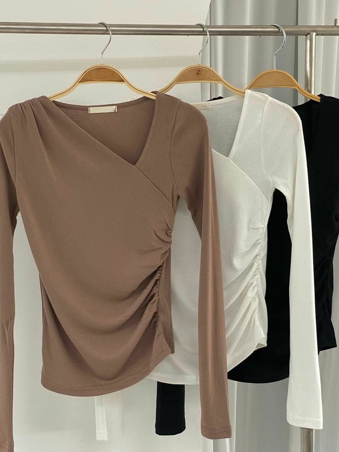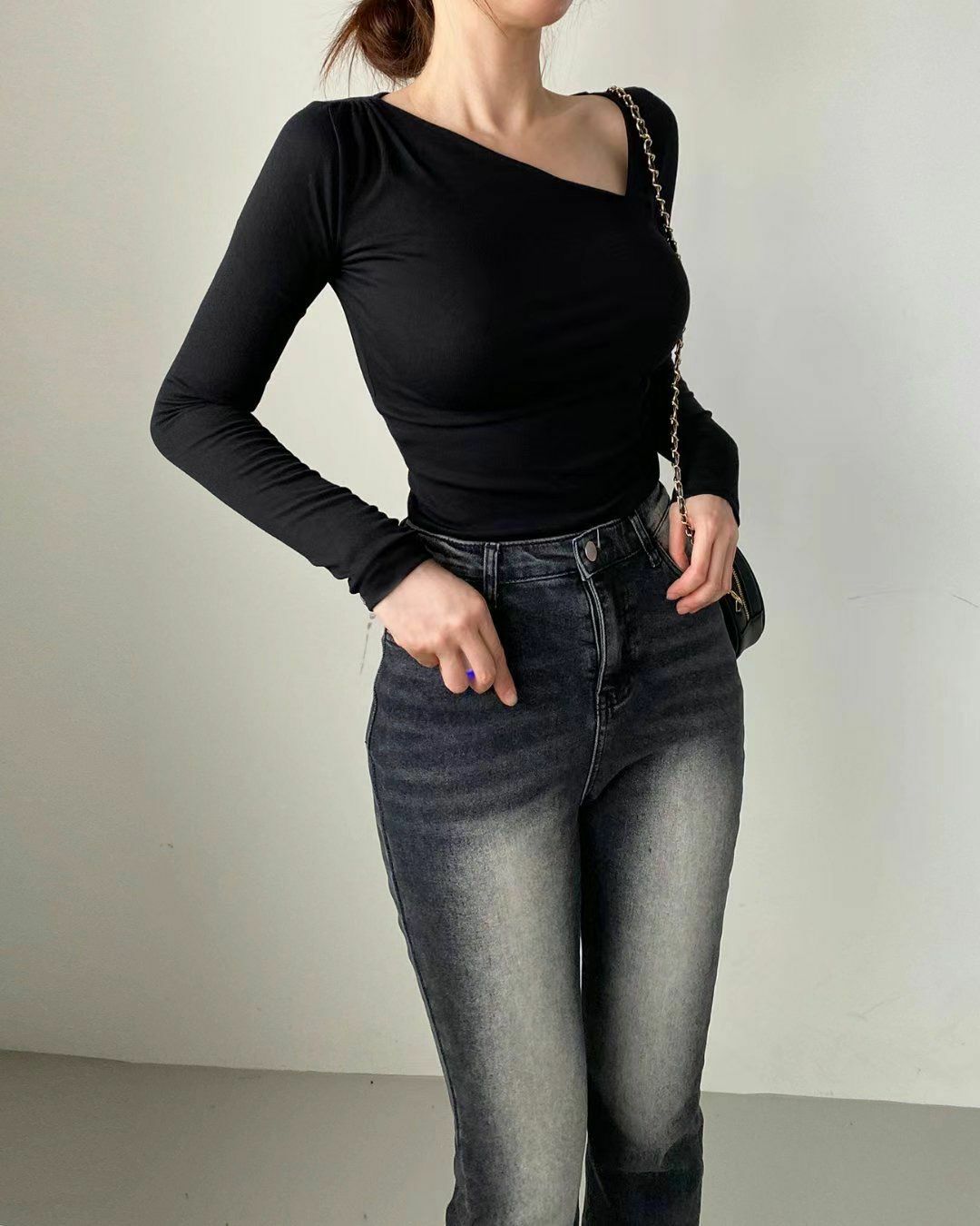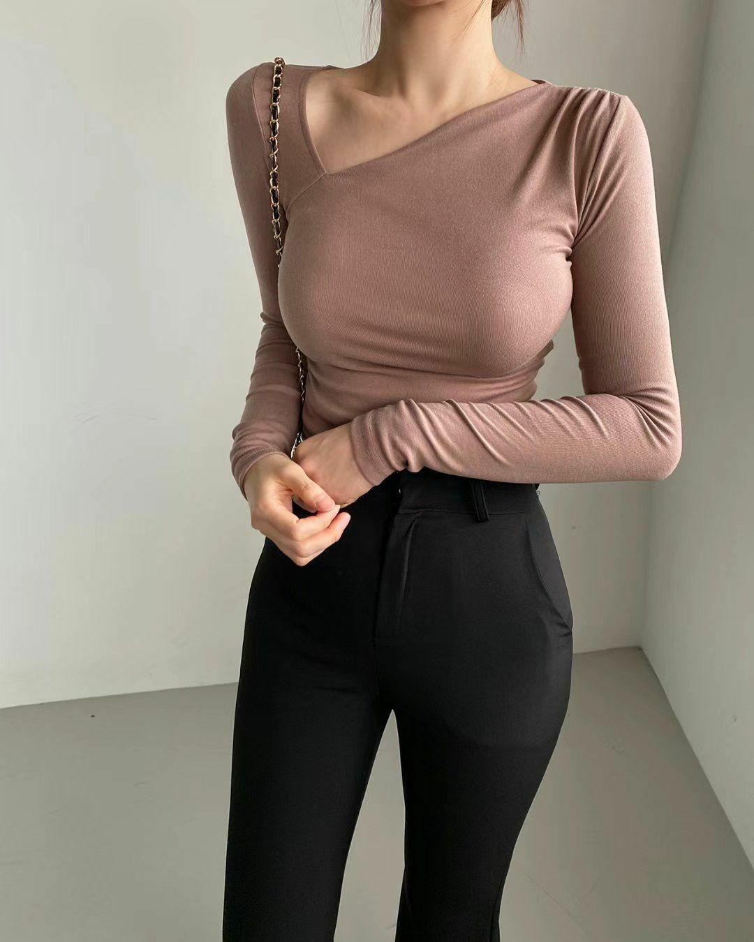 少少的單邊鎖骨位多左空間感不會太低領但會顯得特別顯瘦喔