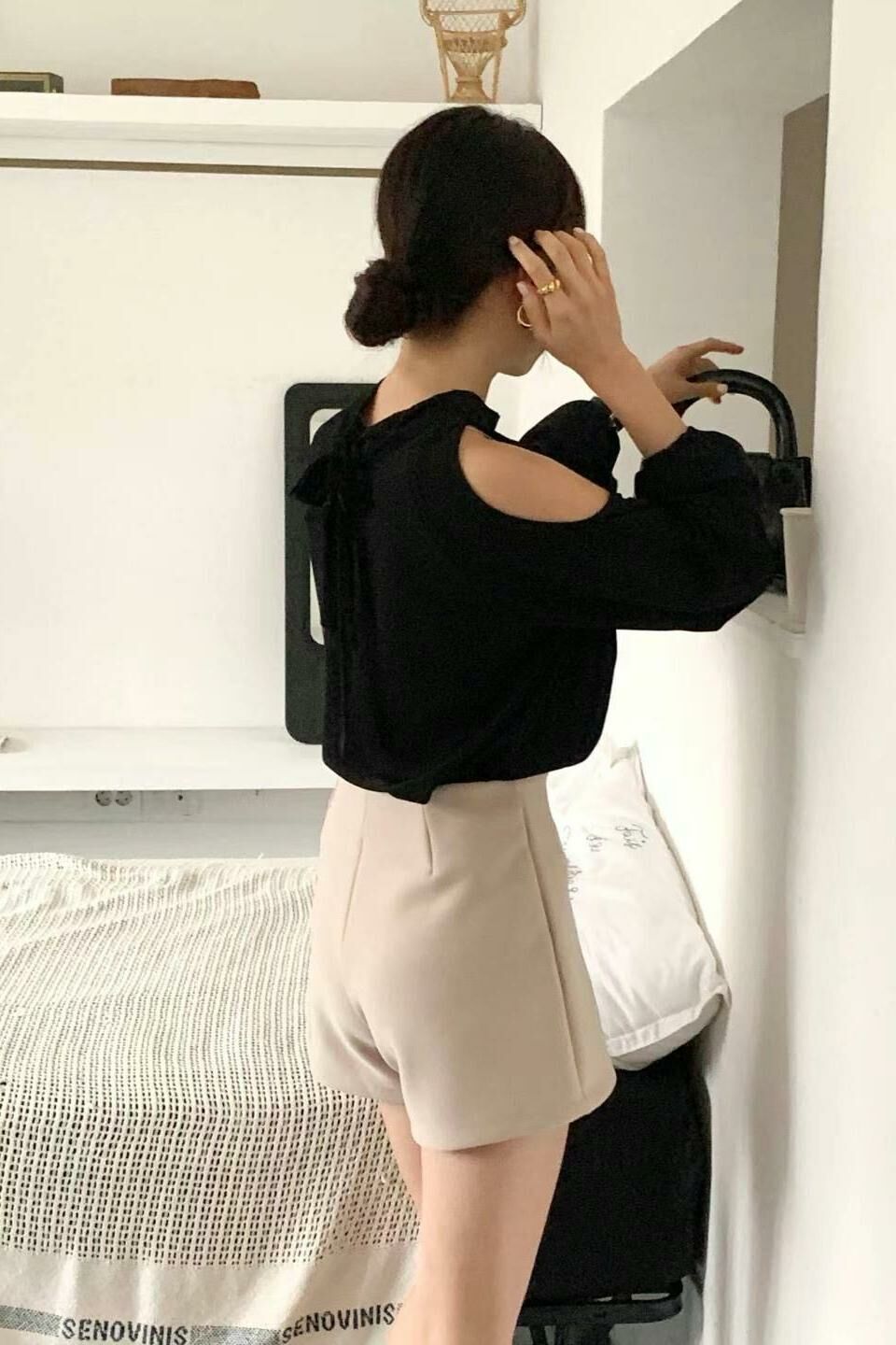 呢件襯高腰西褲或者短裙都得,想casual啲可以襯牛仔shorts,打造Effortless Chic感覺。