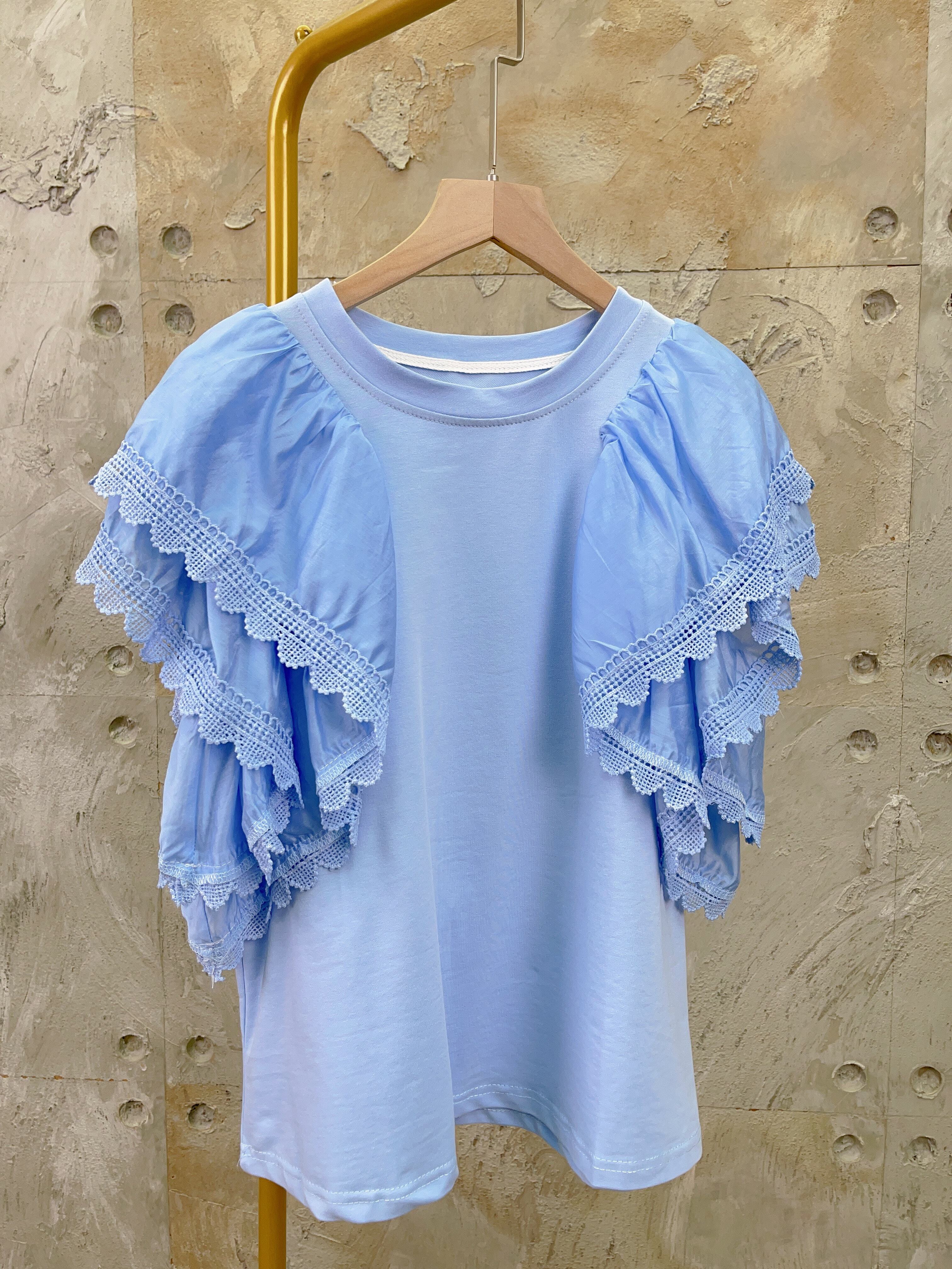 兩層的雪紡啞光面薄面料做到飄逸的飛飛袖效果💛