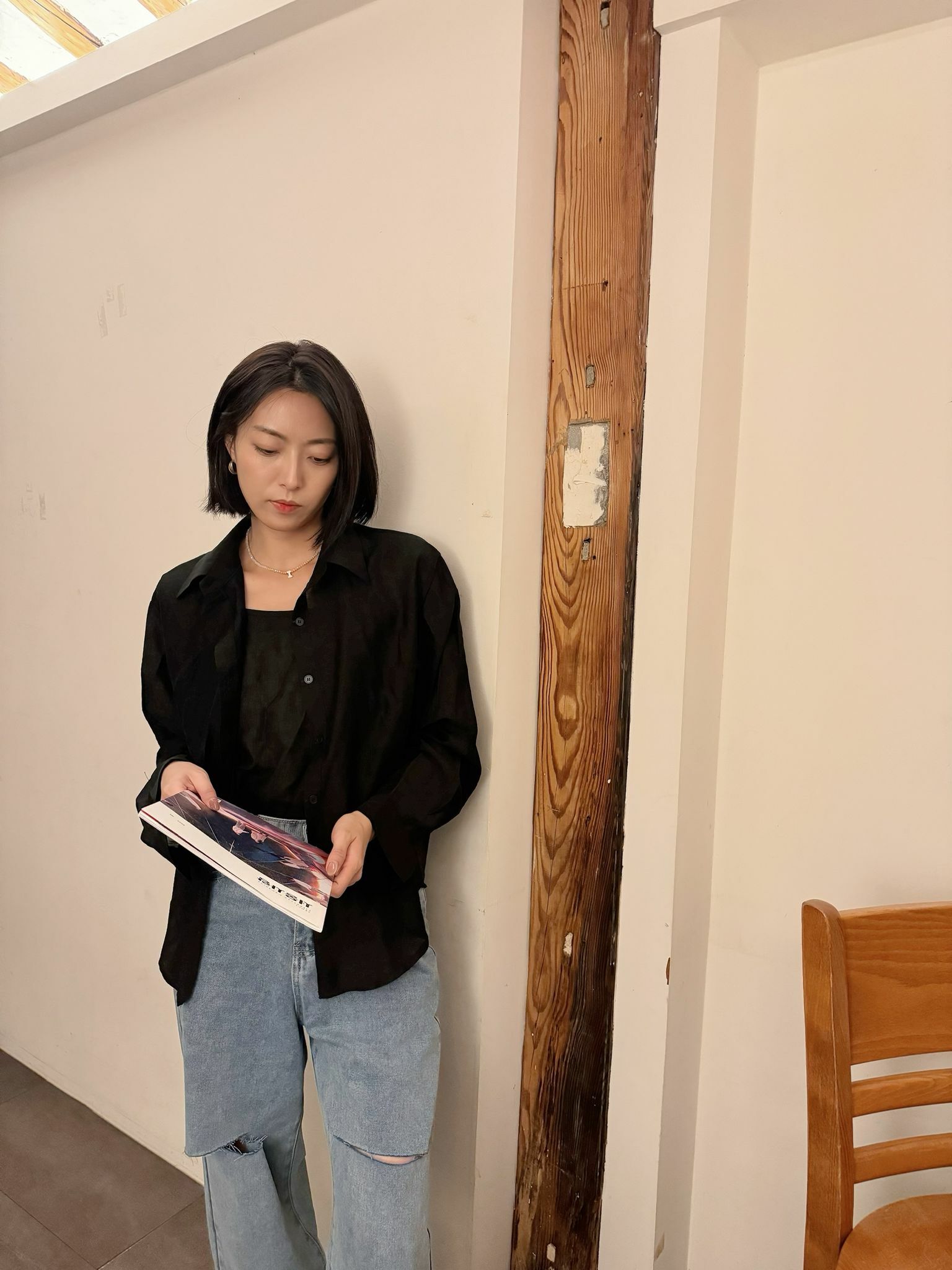 恤衫唔係真係恤衫係帶有雪紡飄逸感嘅垂肩隨意feeling 質地