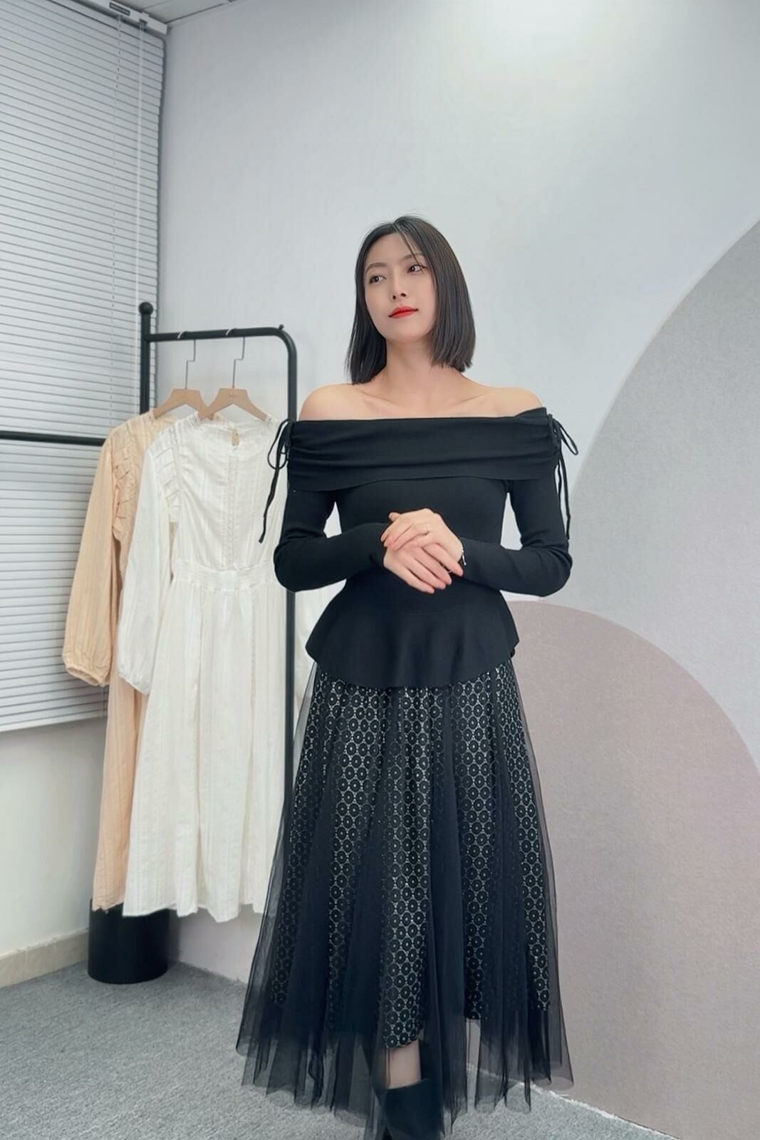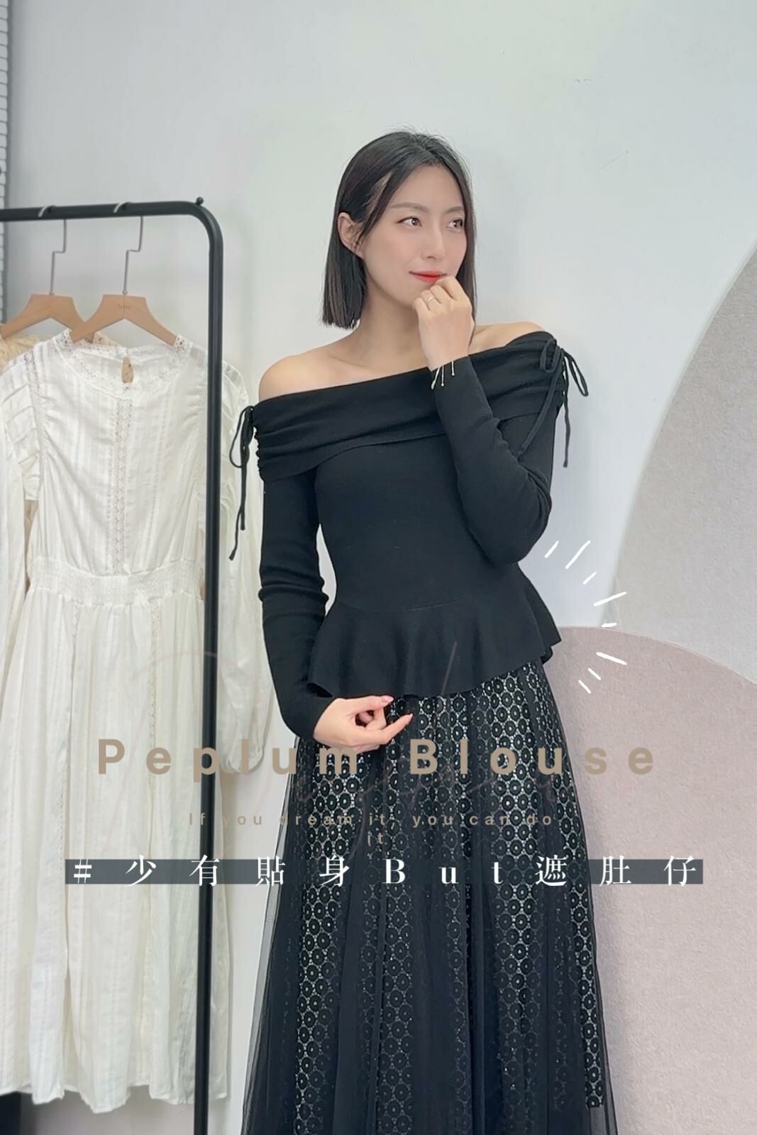 Soo sweet🥨cutting 非常靚嘅一件Top~ 一字肩設計仲加左束帶位~可以自由調節