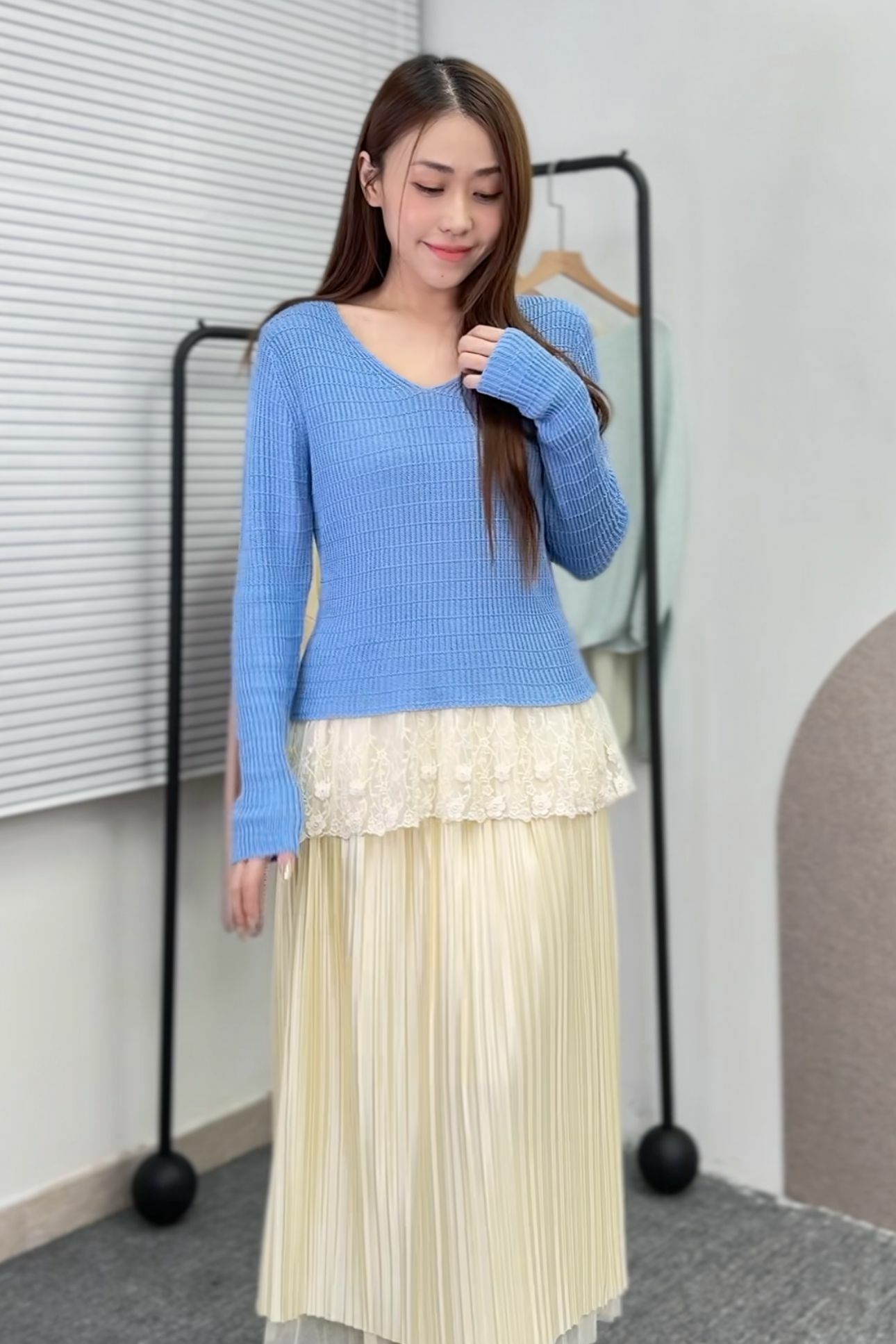 配搭方面,想行 韓系溫柔風,可以搭高腰闊腿褲 + 平底瑪莉珍鞋,簡單但夠晒氣質!
