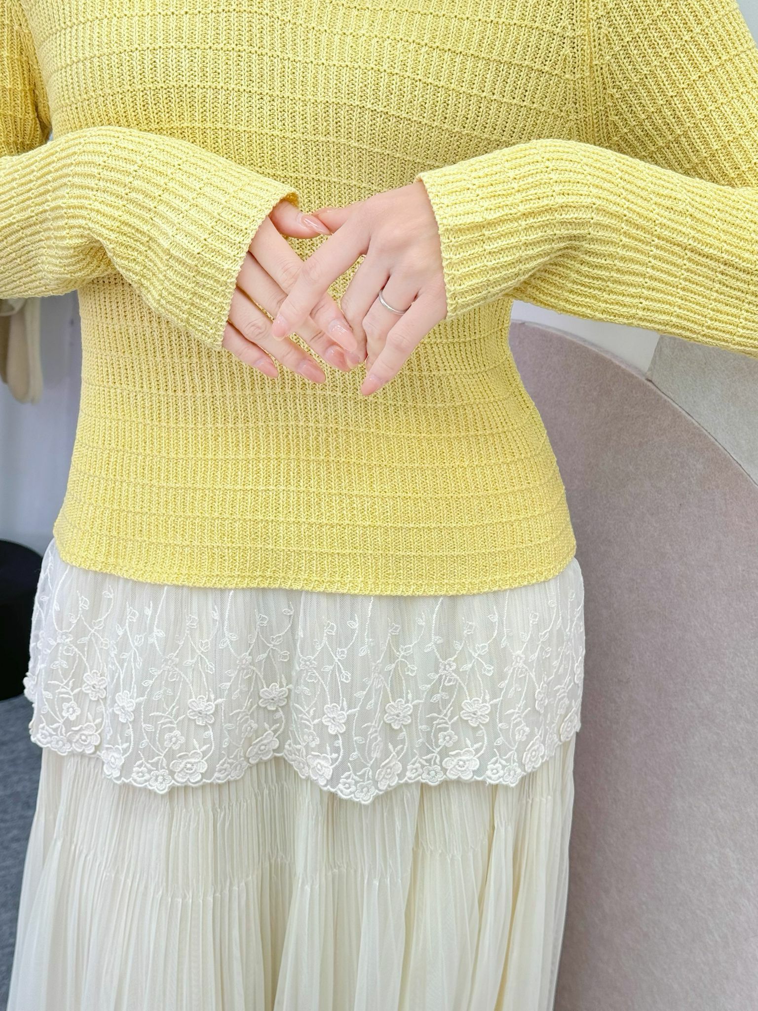 呢個see-through刺繡蕾絲 仲可以修飾腰腹比例,即使襯貼身褲或者短裙都唔會有尷尬位,整體視覺會更加修長。