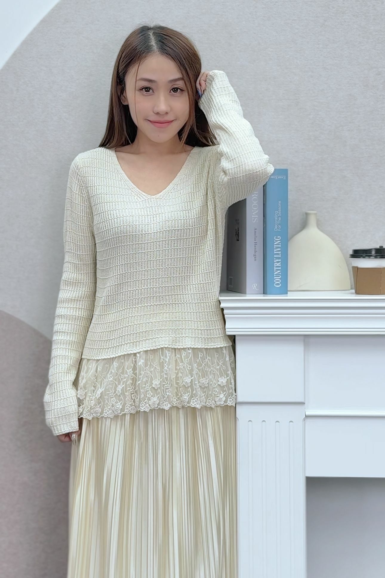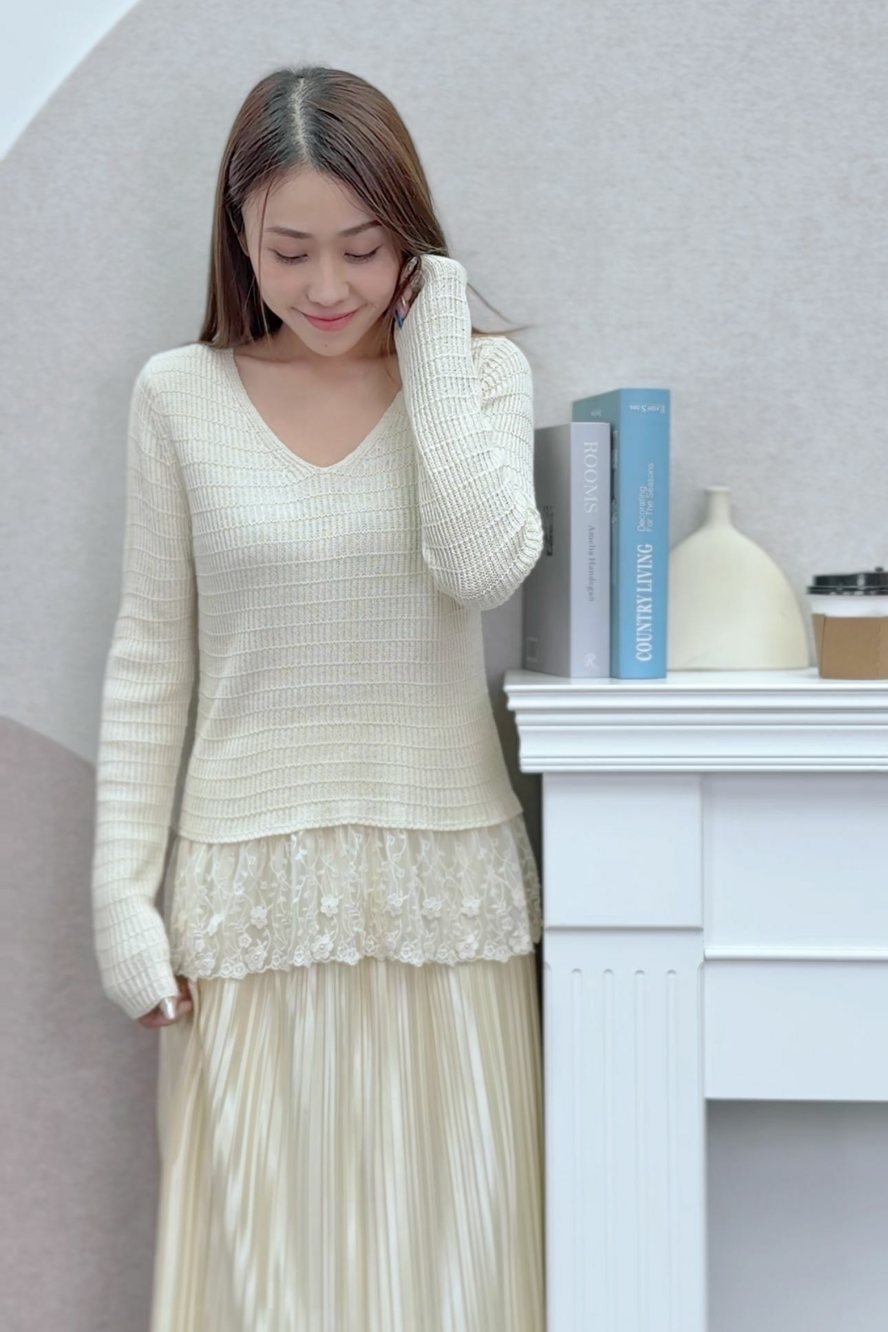 手袖做得夠長,舉手投足都帶點慵懶感,超有日系知性美!