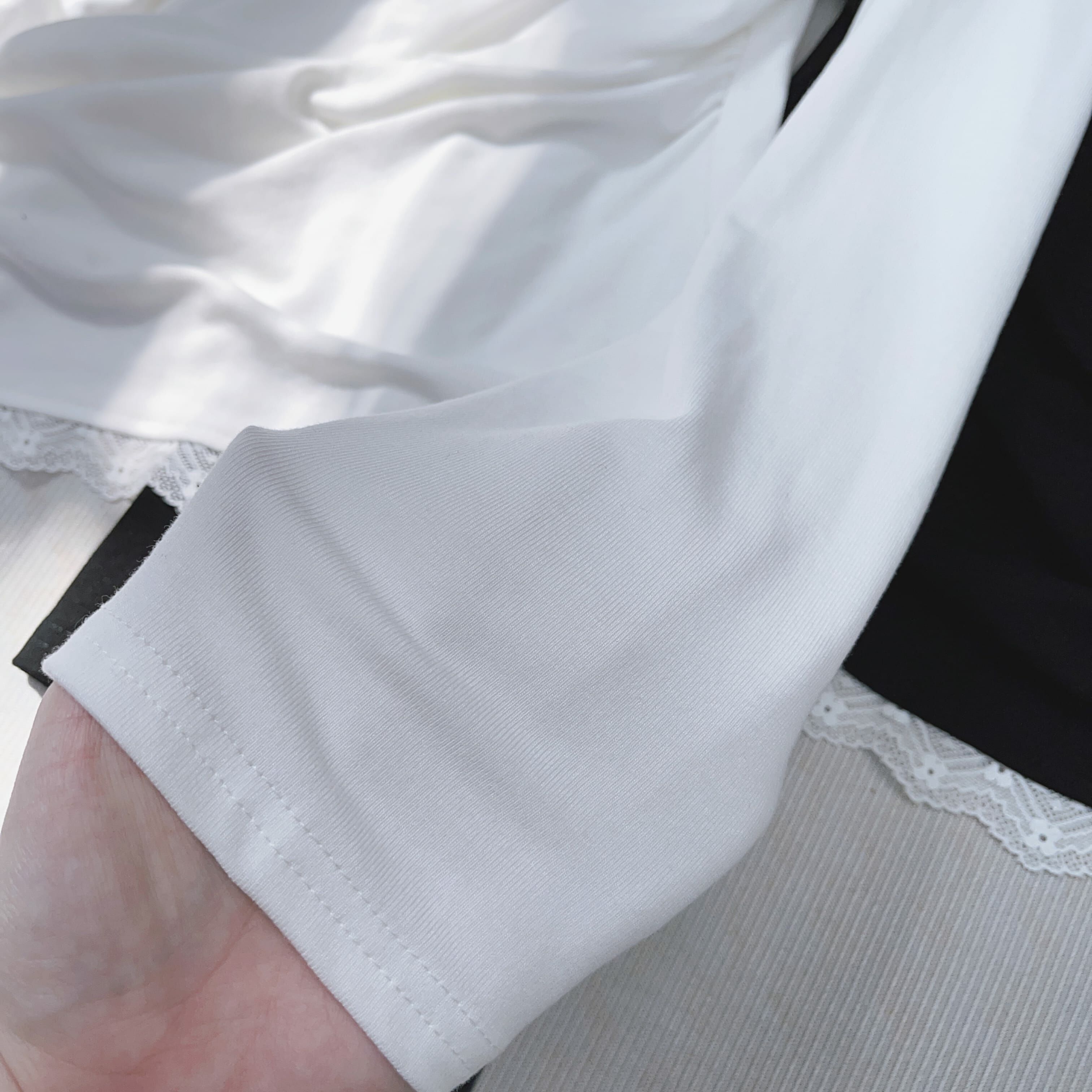 呢件衫有個法式lazy elegance嘅感覺,因為佢用咗輕盈軟滑嘅彈性面料,唔會死挺,著上身自然貼服但又有啲鬆弛感,唔會覺得繃住。
