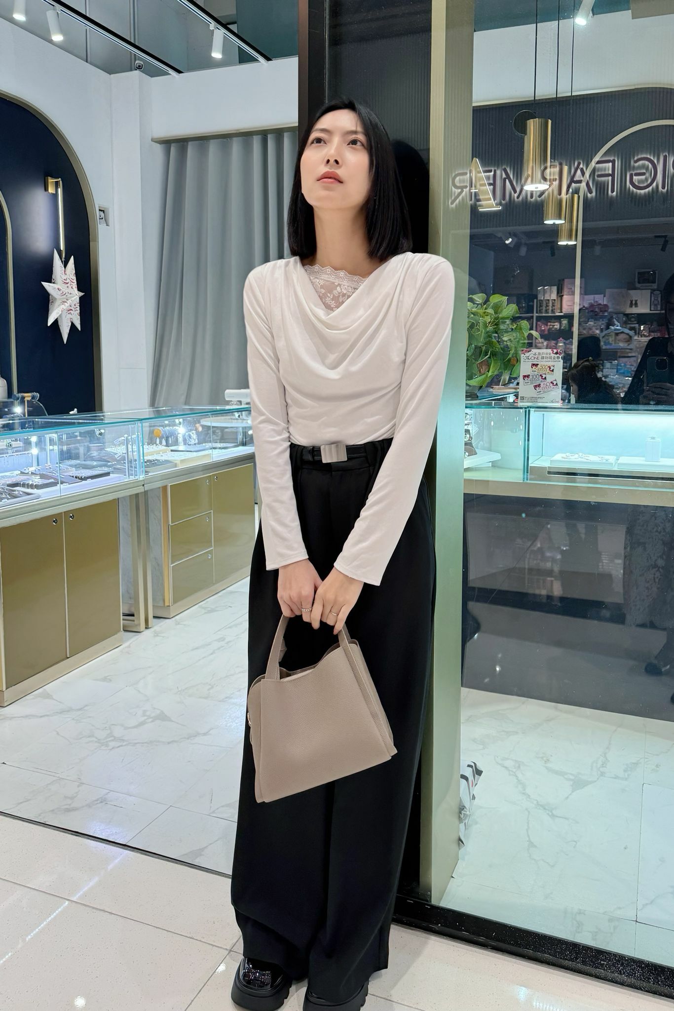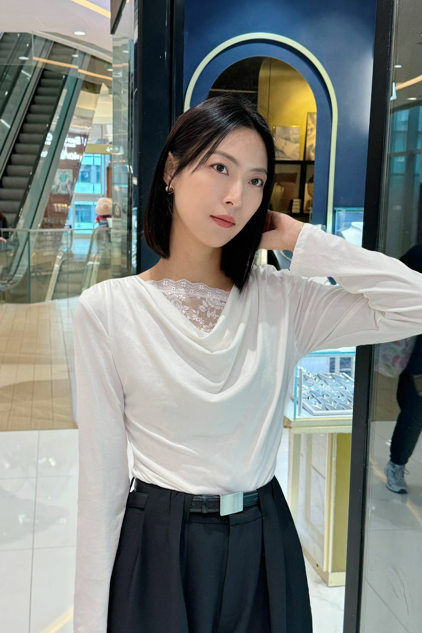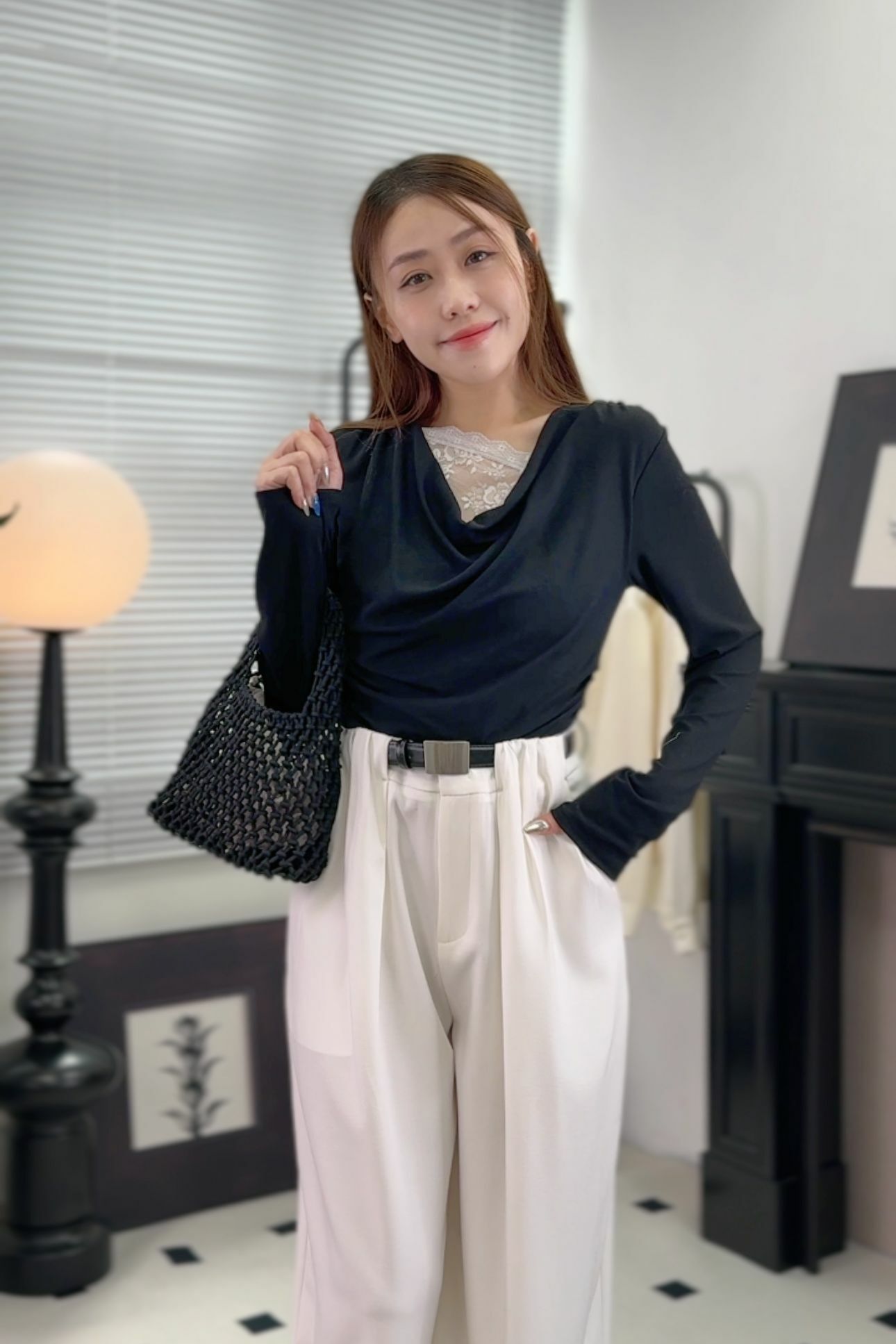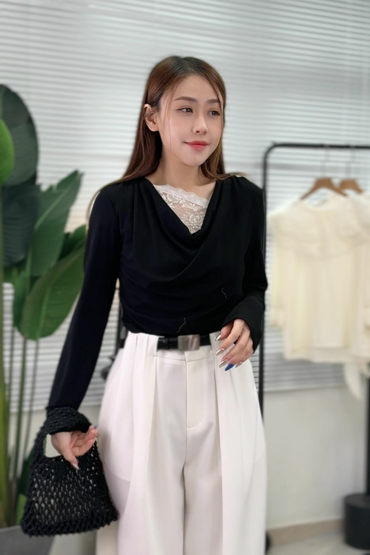 大領口嘅垂墜設計可以修飾肩頸線條,加埋露出少少lace,好有低調嘅女人味,但又唔會太過甜美,係帶啲cool感嘅溫柔。