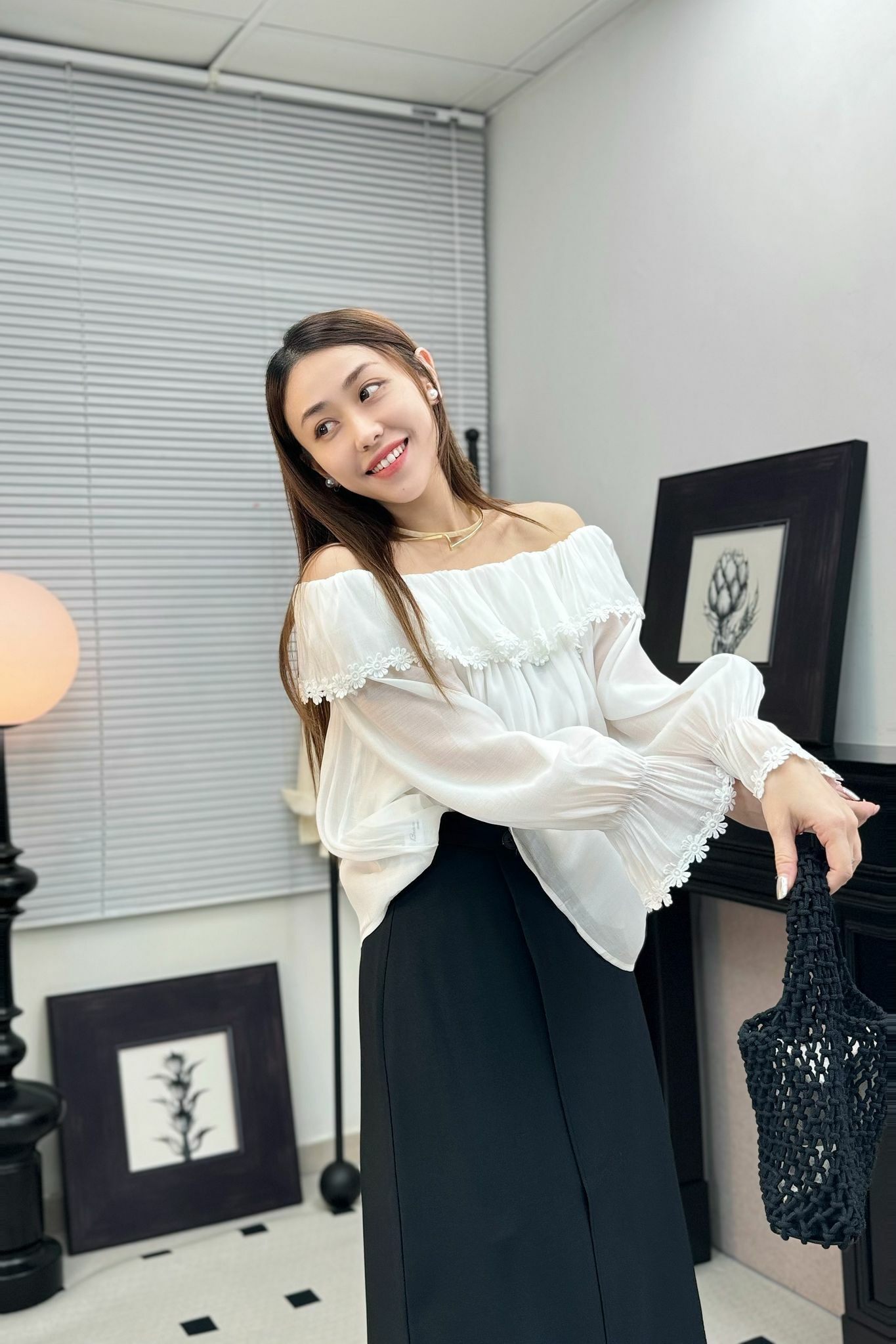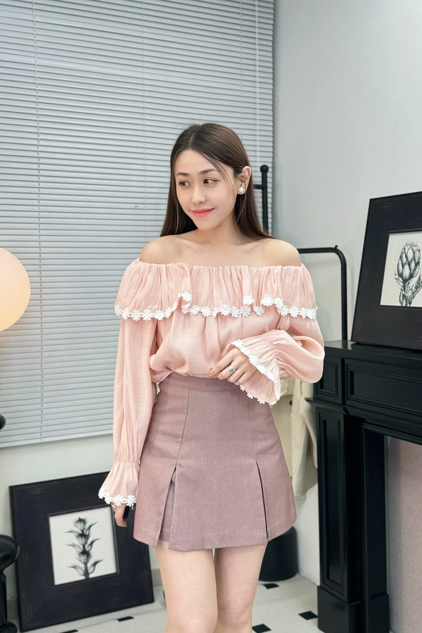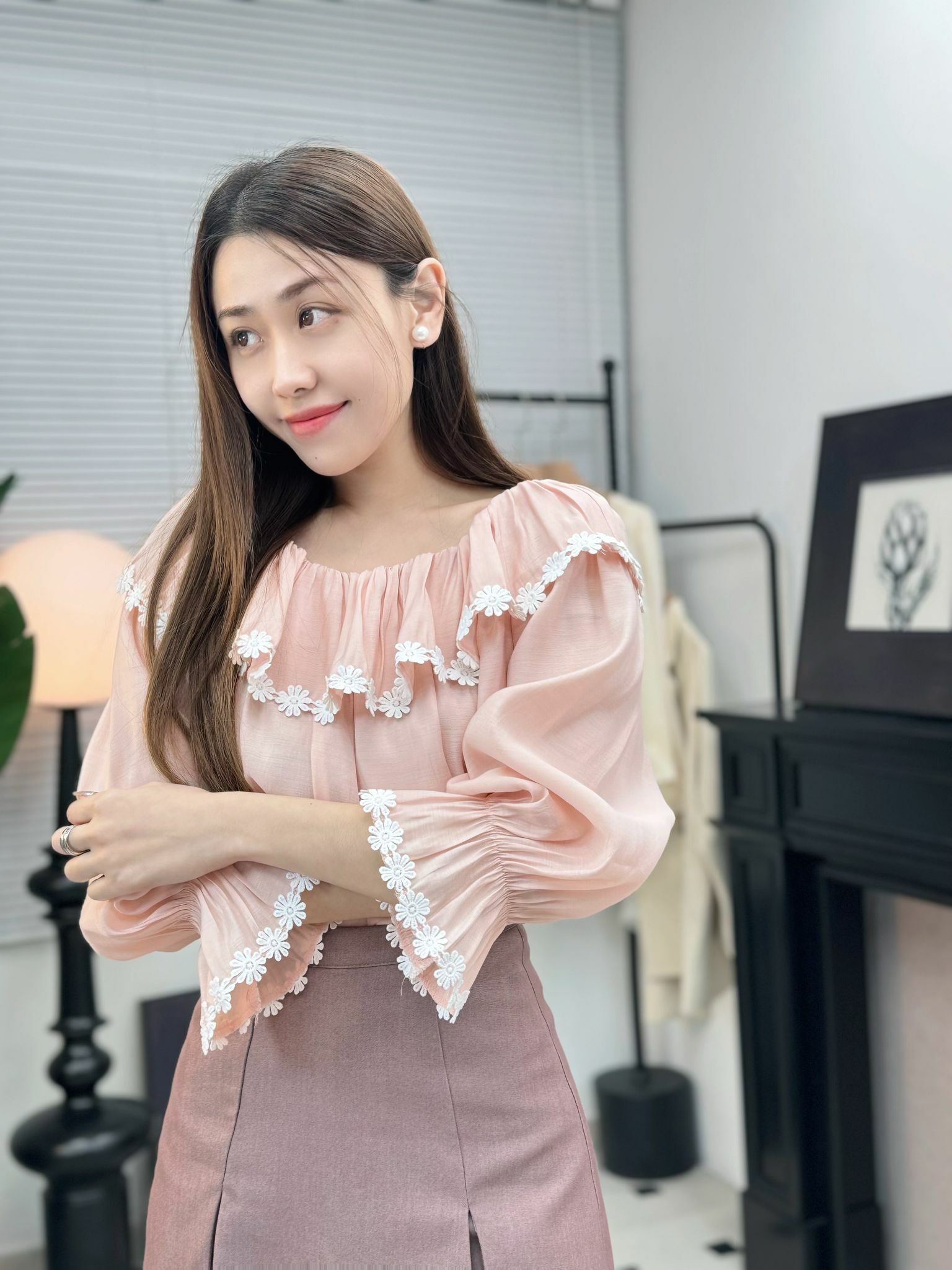 大荷葉領,落嚟帶少少 一字領感,但又唔會太誇張,剛剛好露到鎖骨,修飾得嚟又唔會唔自在,呢種Cutting就係最適合 「法式隨性感」