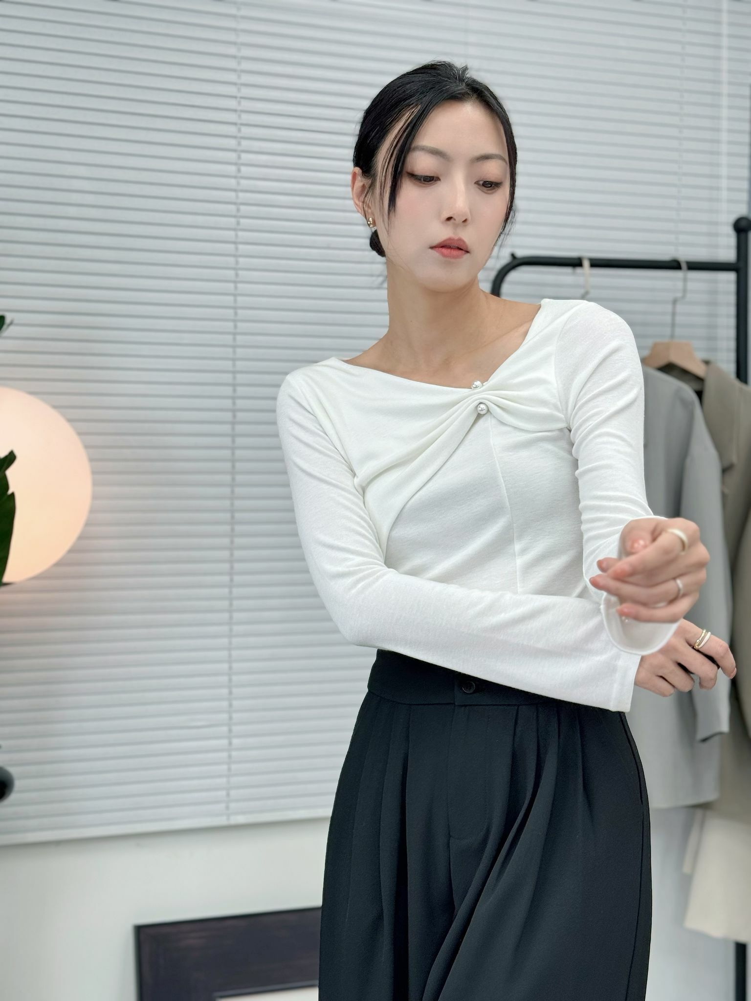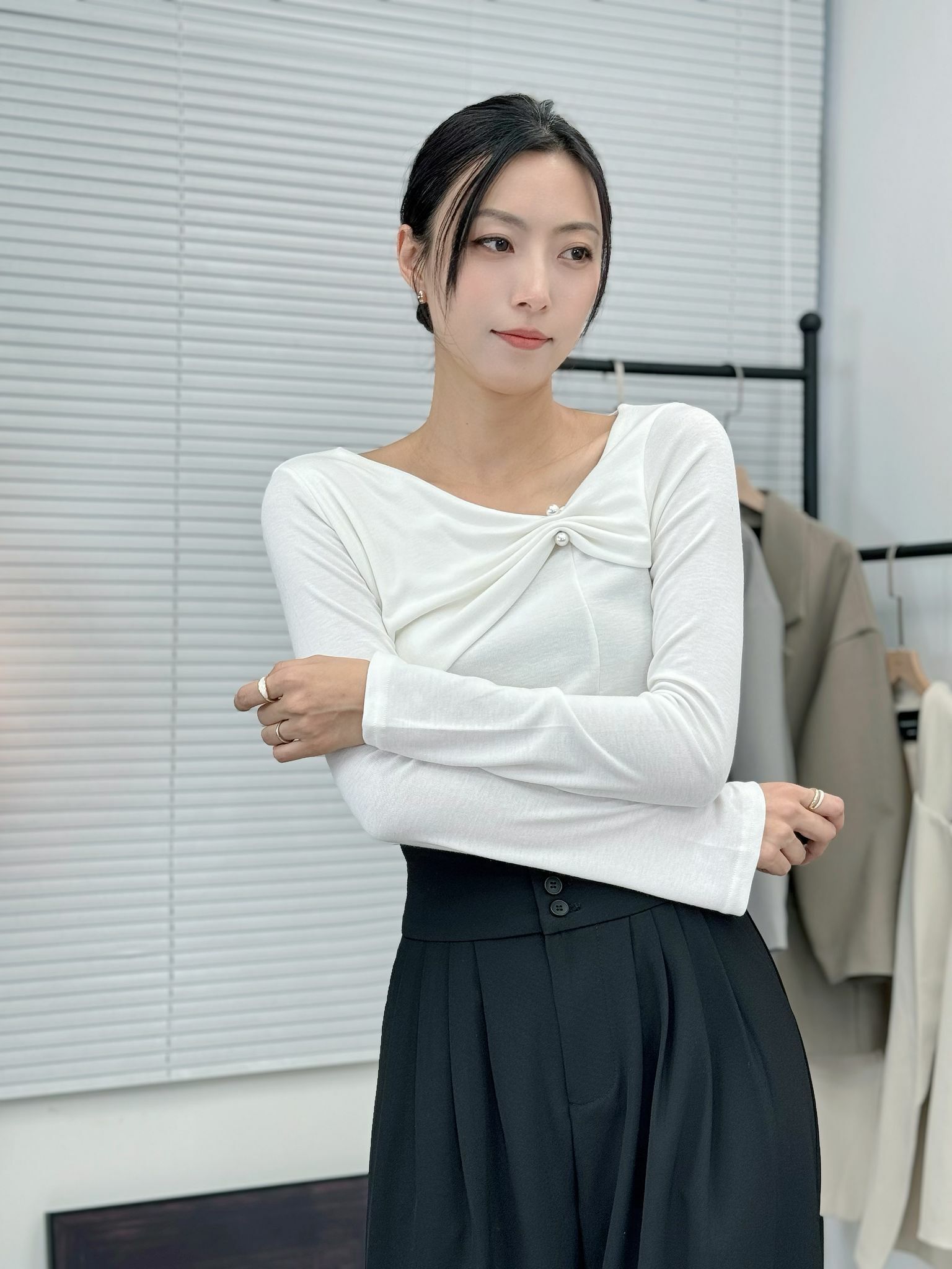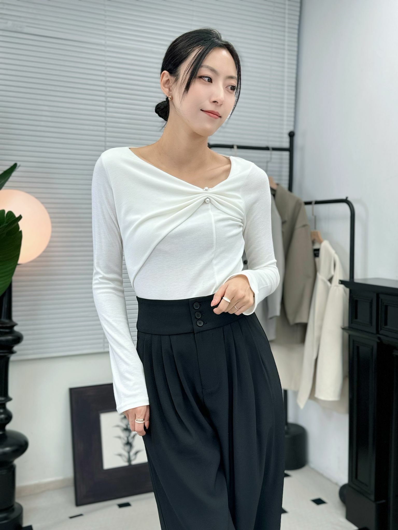 TOP#7004 🤍輕扣針優雅打結top