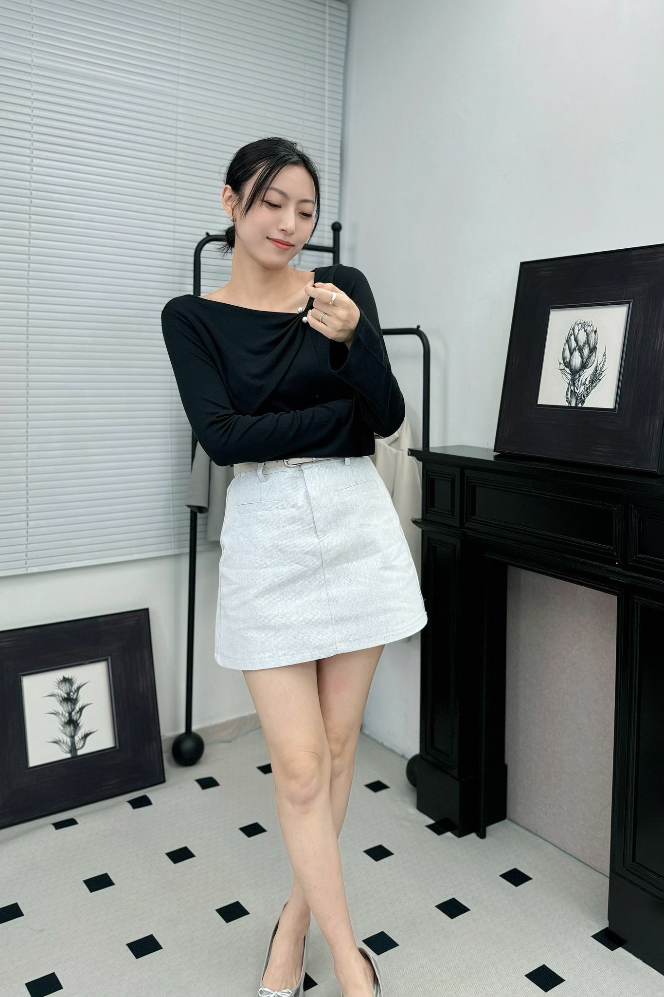 前面嘅打結位配上細細粒珍珠鈕扣,cutting simple,但啲details位做得好靚,成件衫就upgrade晒~