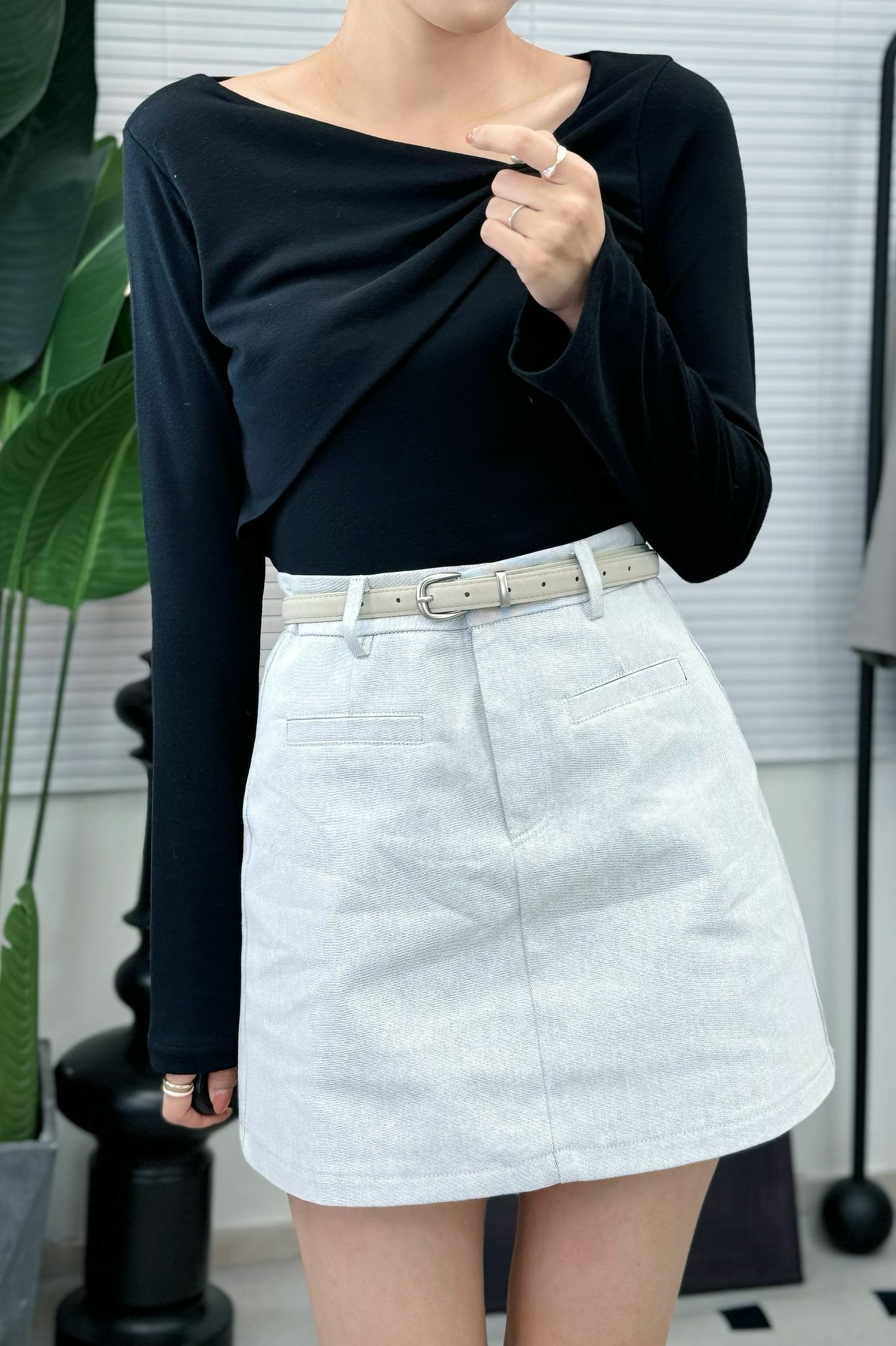 個領位做咗少少twist twist效果再拉橫少少boat-neck feel,露到鎖骨又唔會太over,係嗰種唔經意咁靚嘅design。