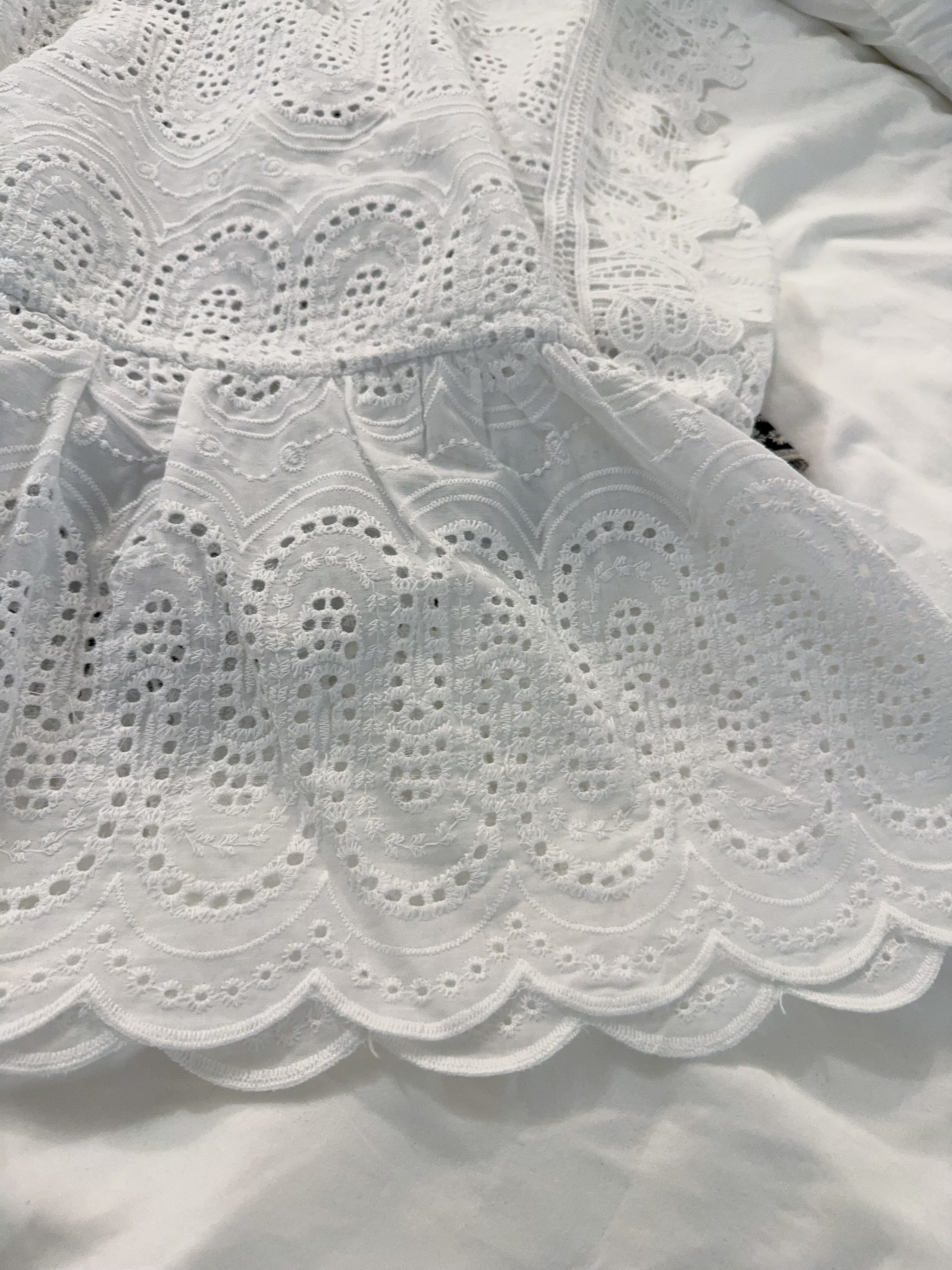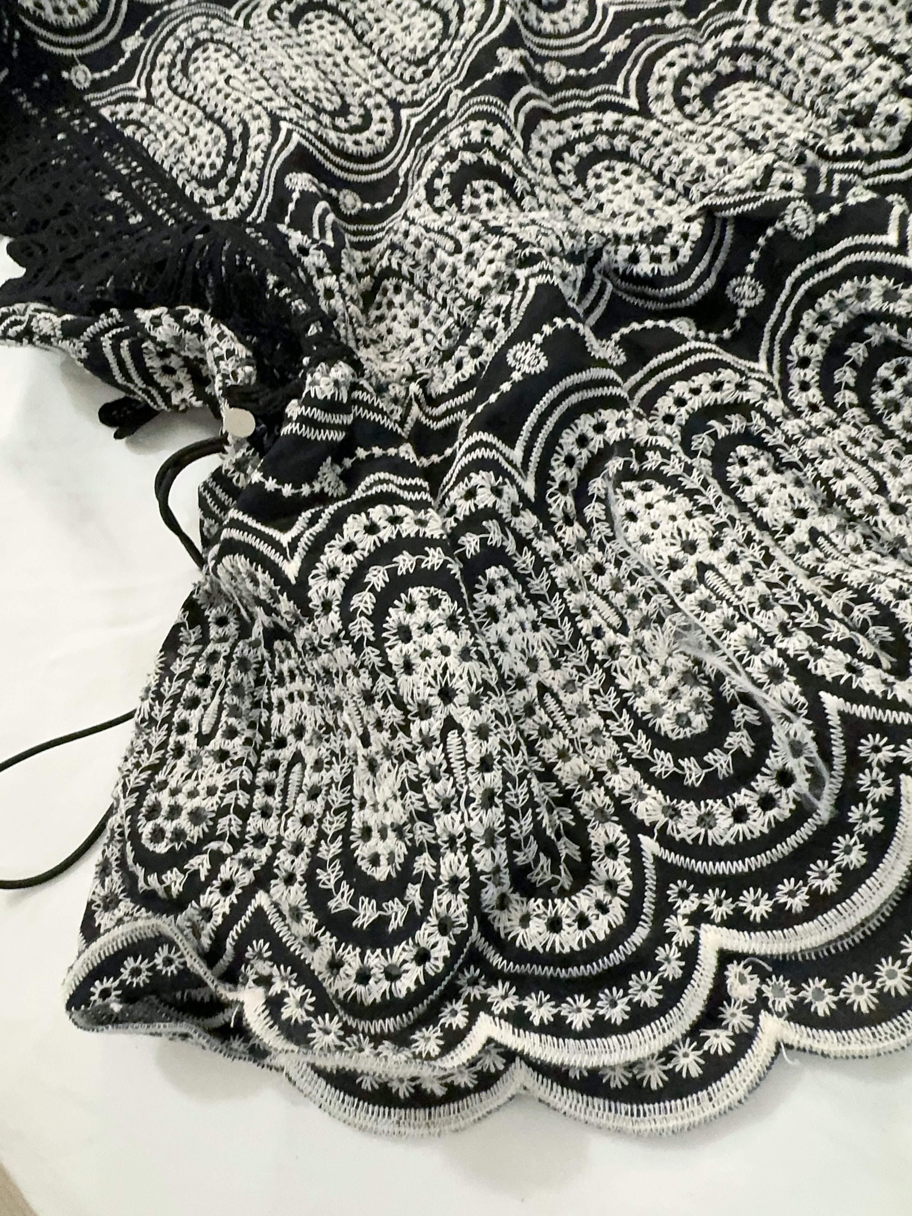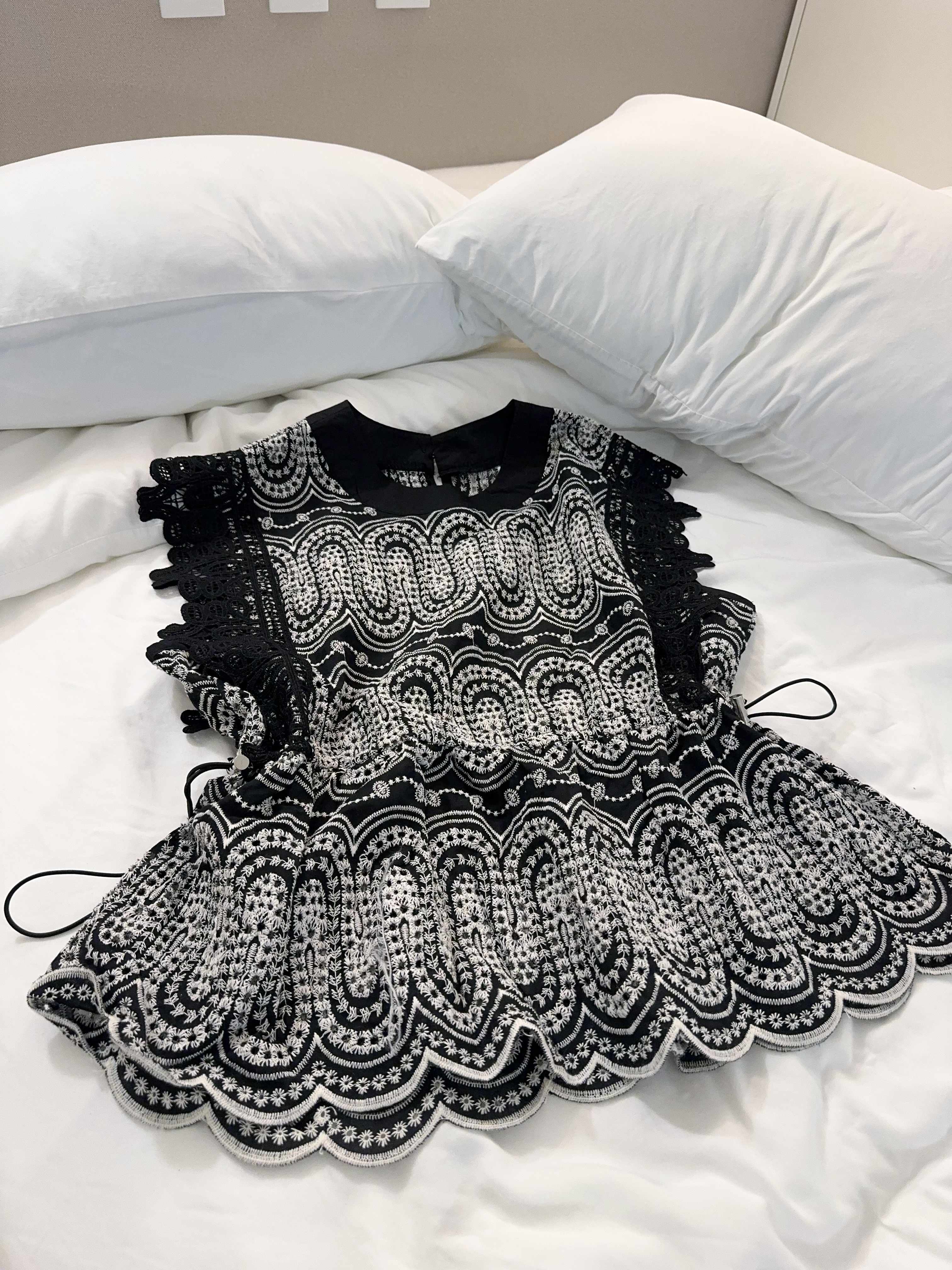 佢做咗一個浪紋幾何cut-out設計,呢啲刺繡cut唔係普通花紋咁simple,係有種結構型圖案feel,靚得嚟帶少少architectural味道。