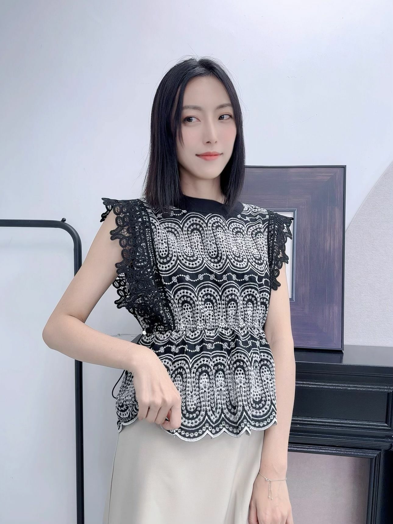 圈圈嘅鏤空刺繡pattern,好似整齊又有節奏咁喺件top度轉動非常有整齊高級嘅宮廷風👸🏻