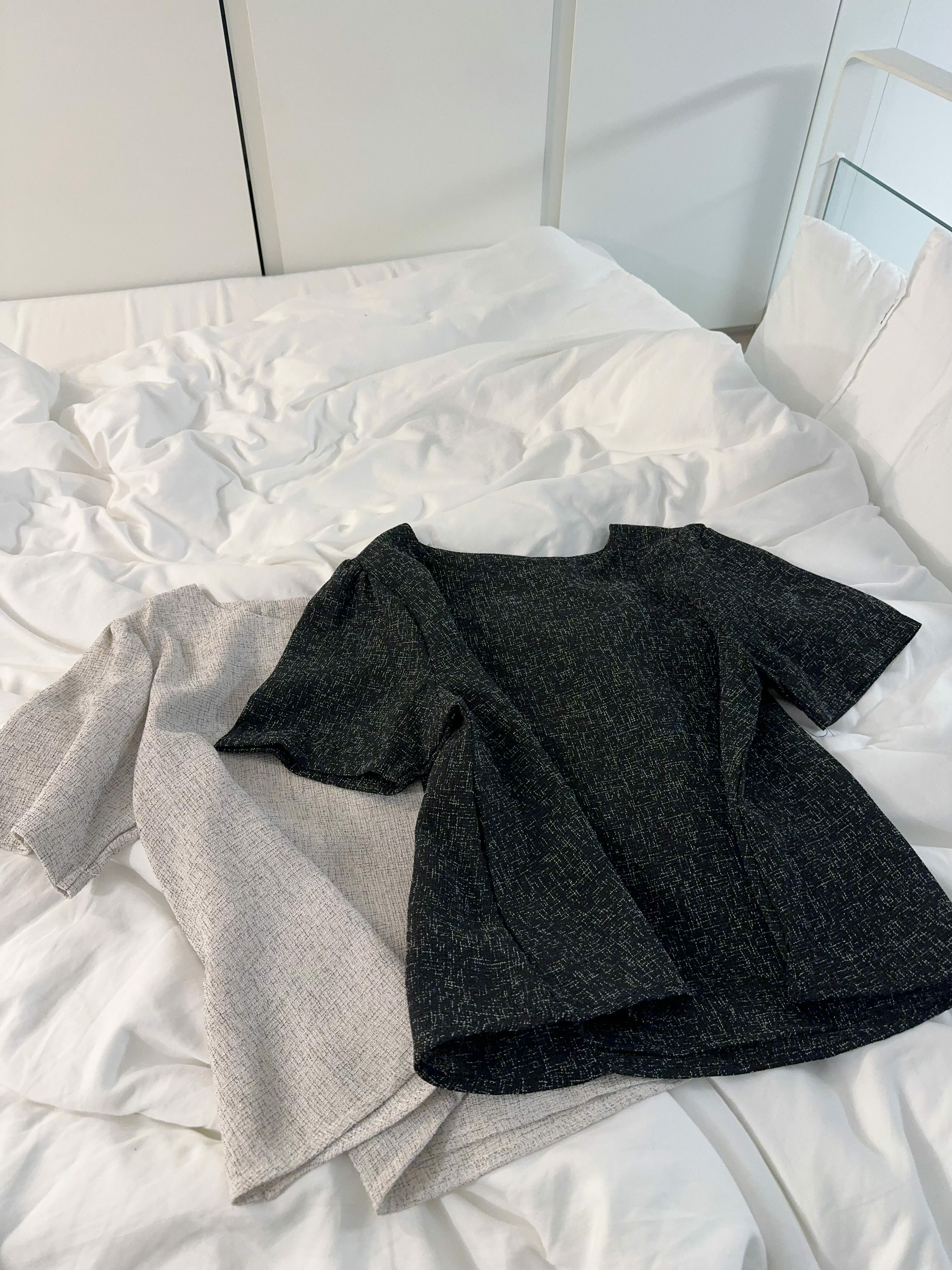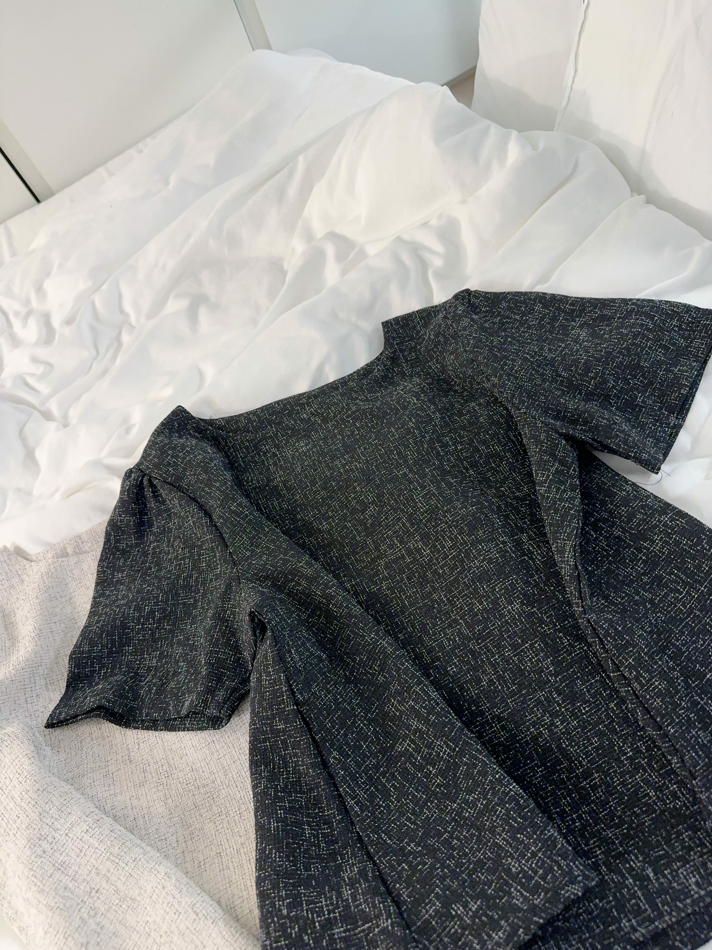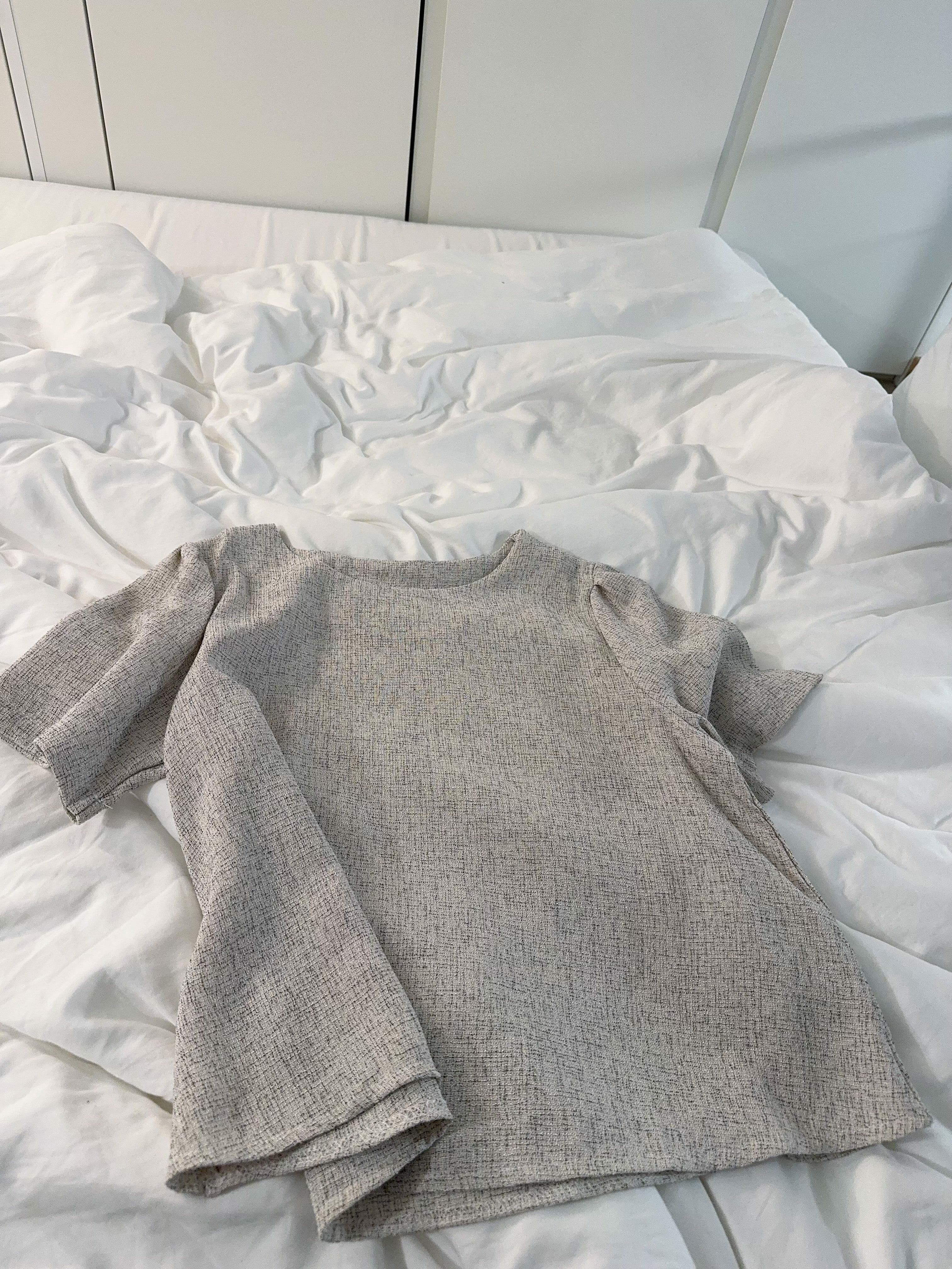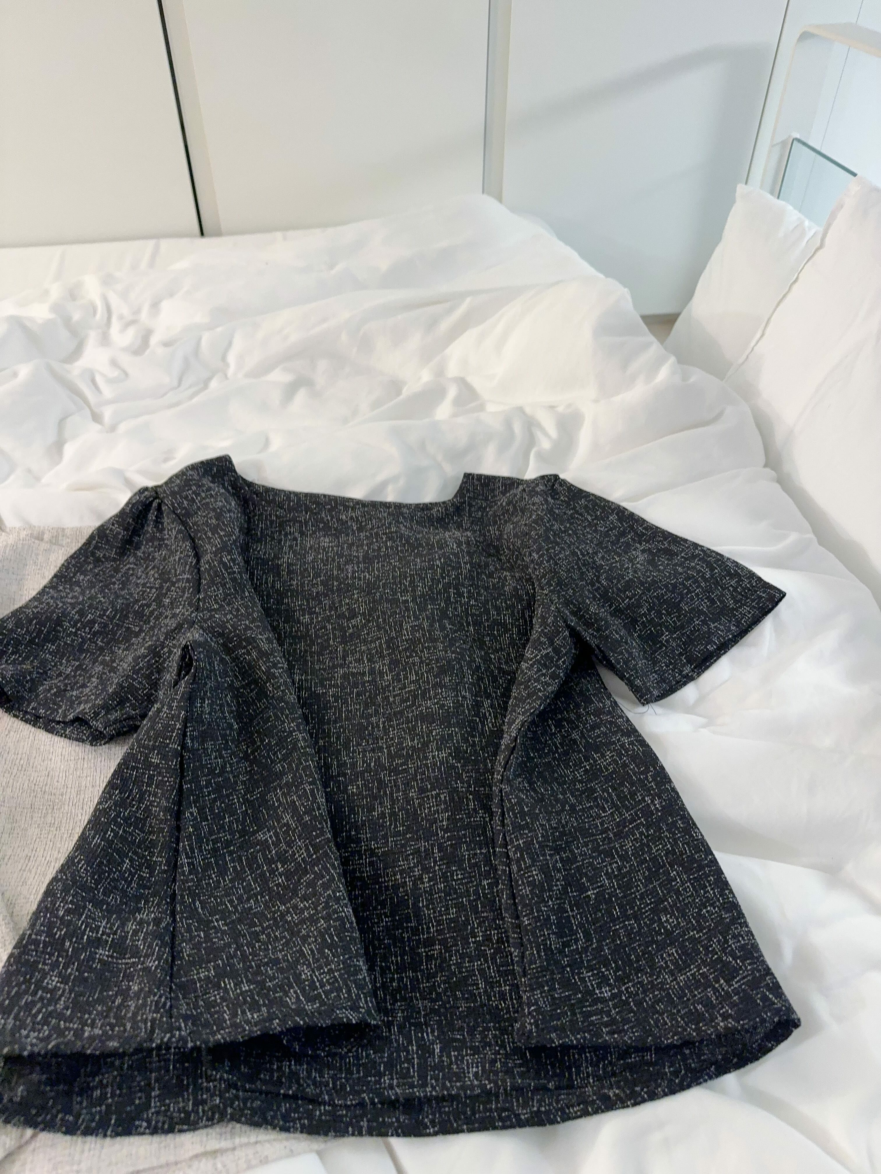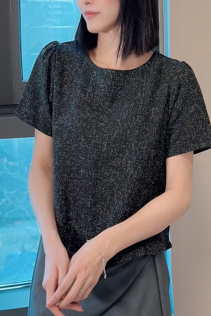 剪裁方面係屬於 Boxy short top設計,唔貼身,唔會熱,而且袖位做咗一個小傘形cutting,微微A-line,唔會箍手臂之餘仲有少少 蝴蝶袖 嘅影子,望落手臂位置勁修飾。