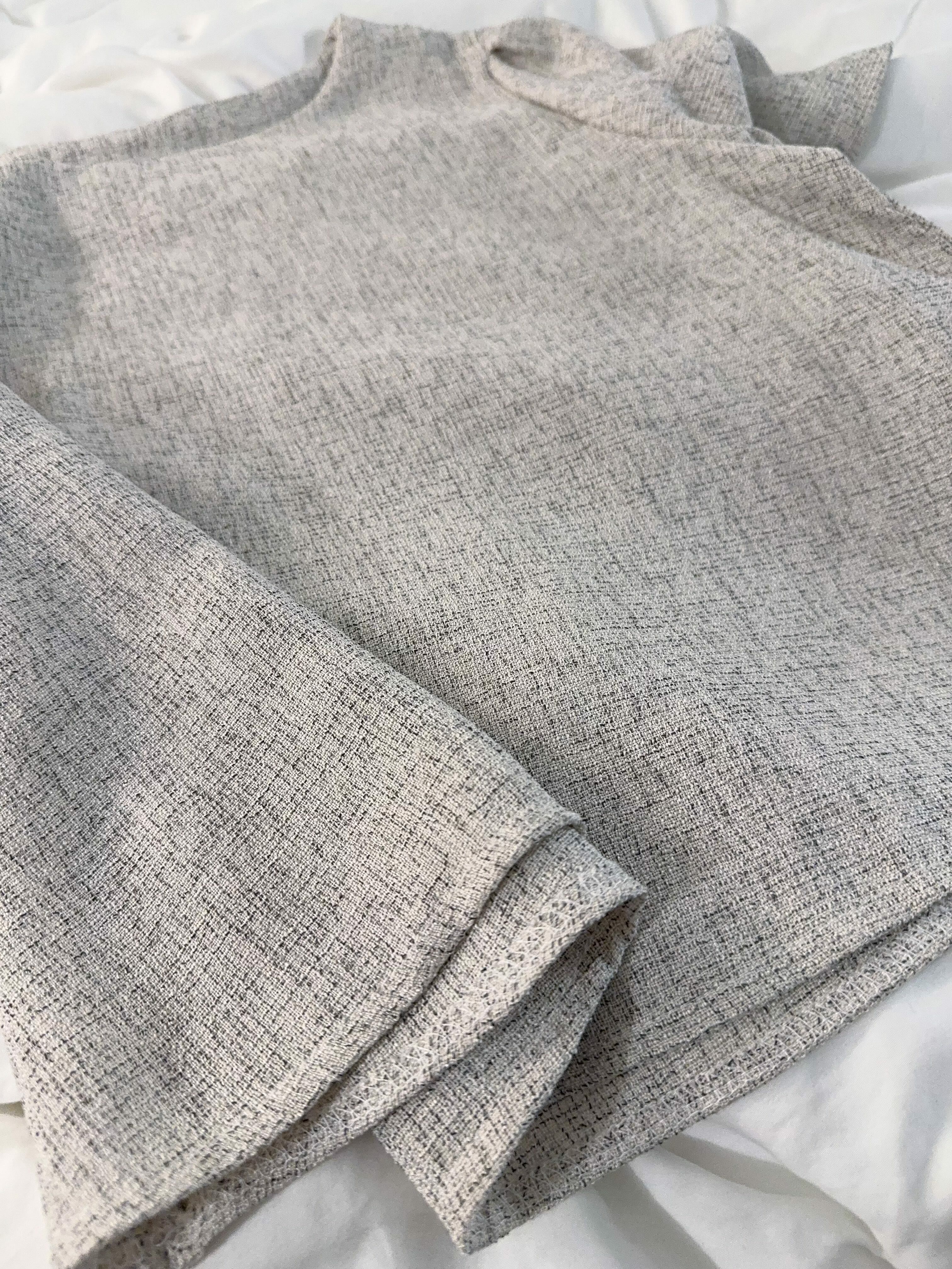 布紋,佢唔係平實地單色,而係做咗一種混色織線感覺,有少少 salt & pepper織感,但係精緻幼滑版,唔會太粗糙。
