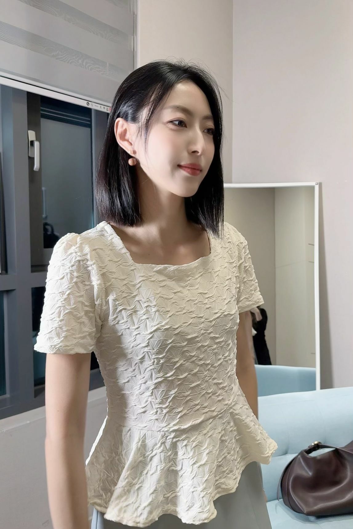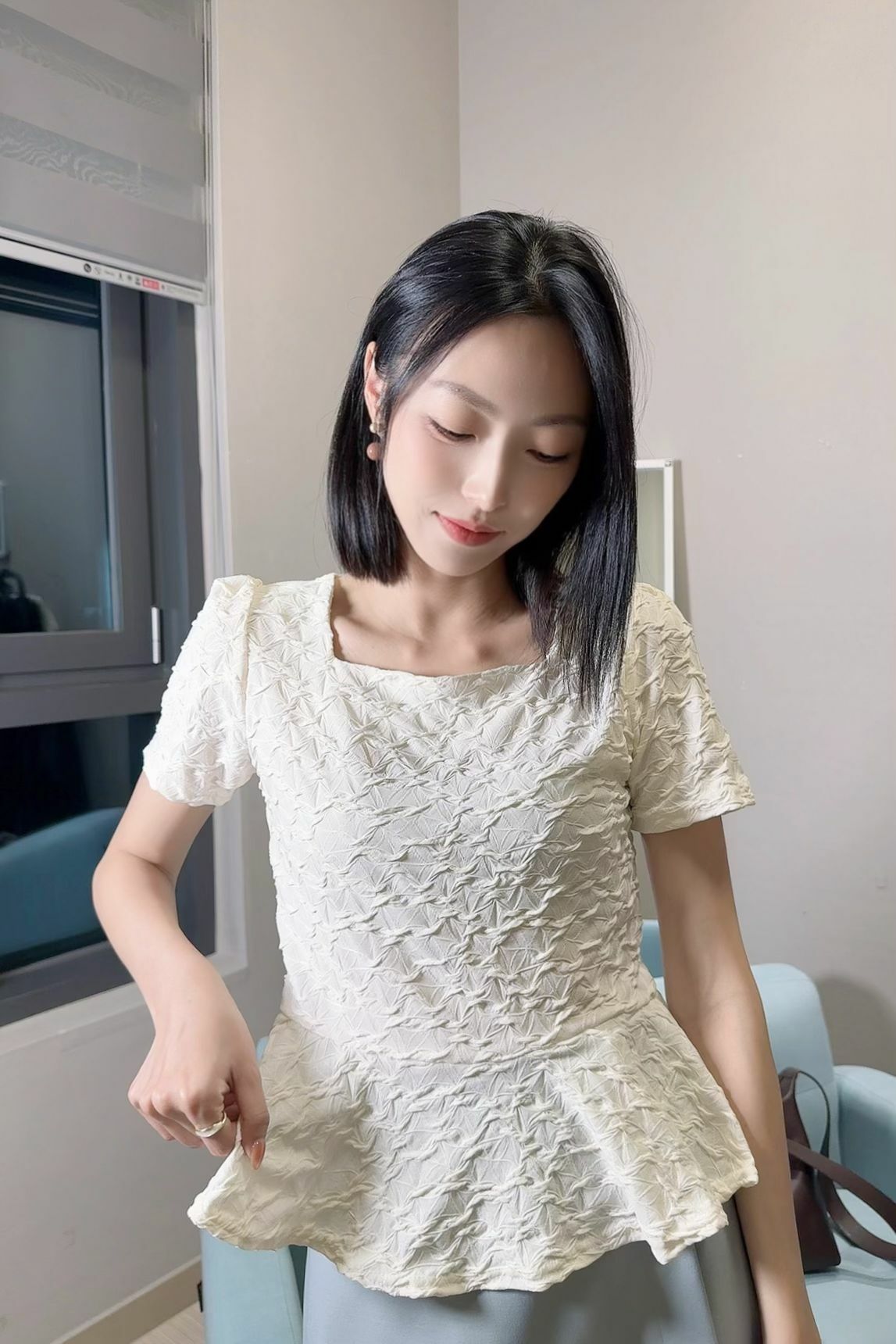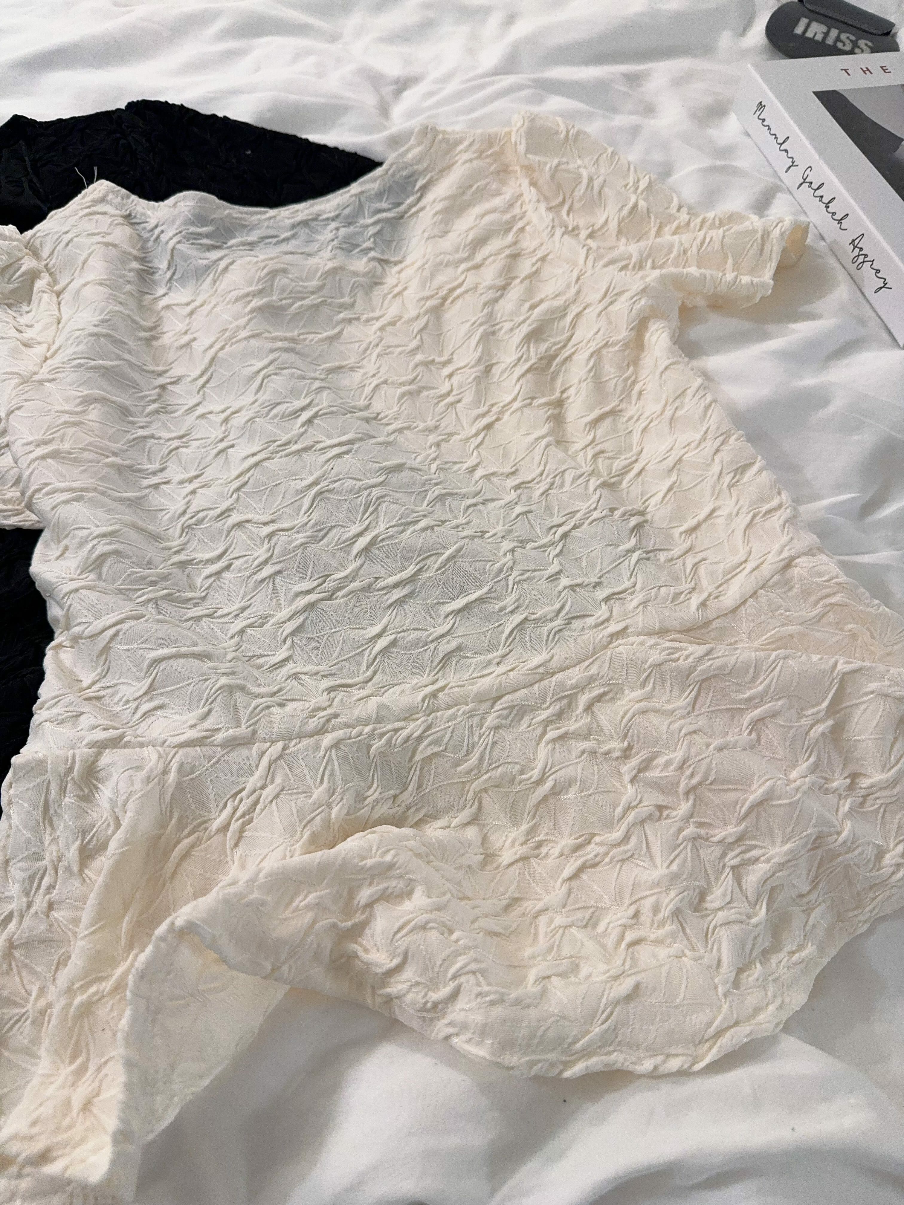 令成件上衣既有 少女感 又唔會過於甜膩,海綿立體紋質地帶輕盈、活潑嘅味道。