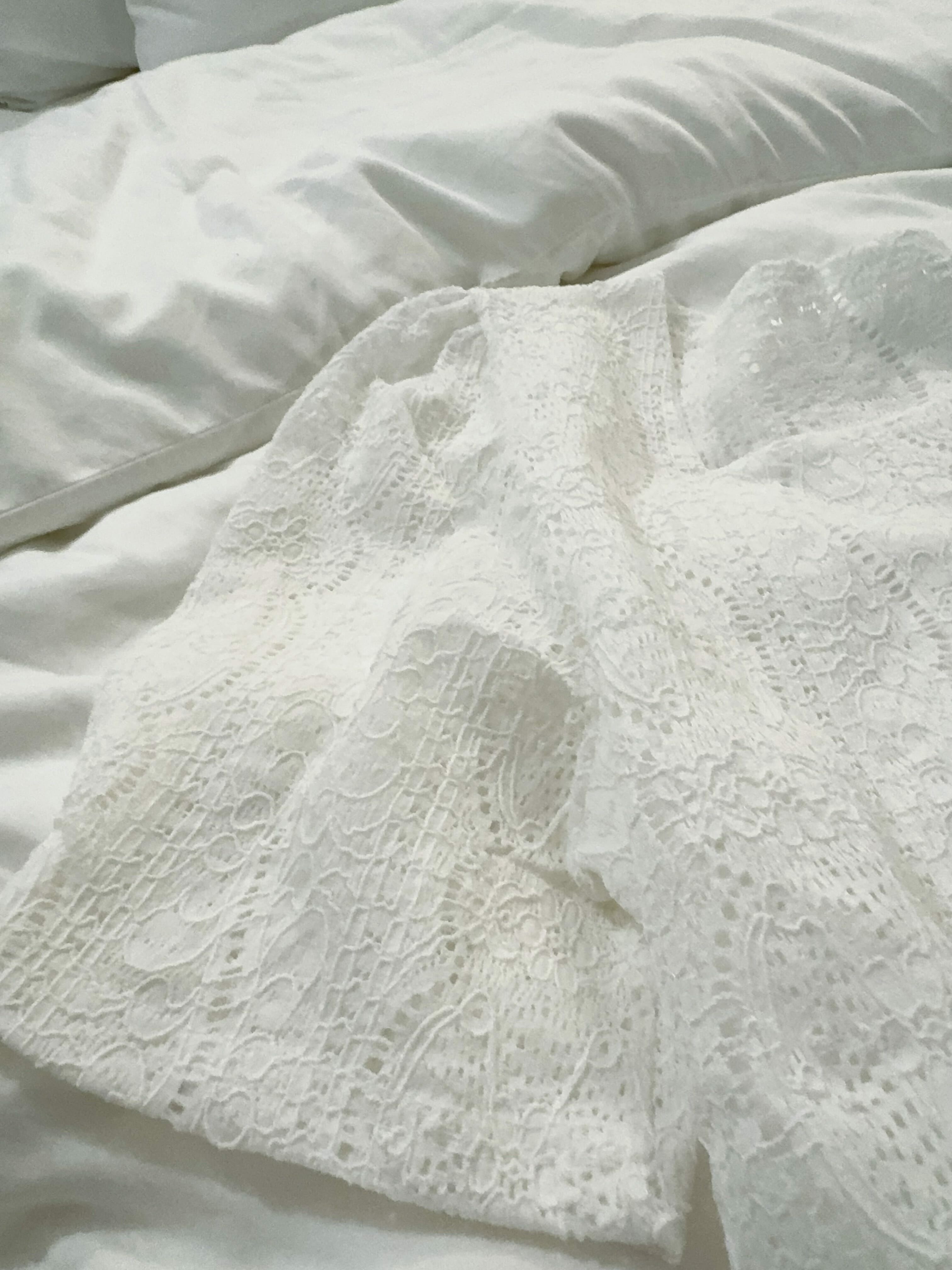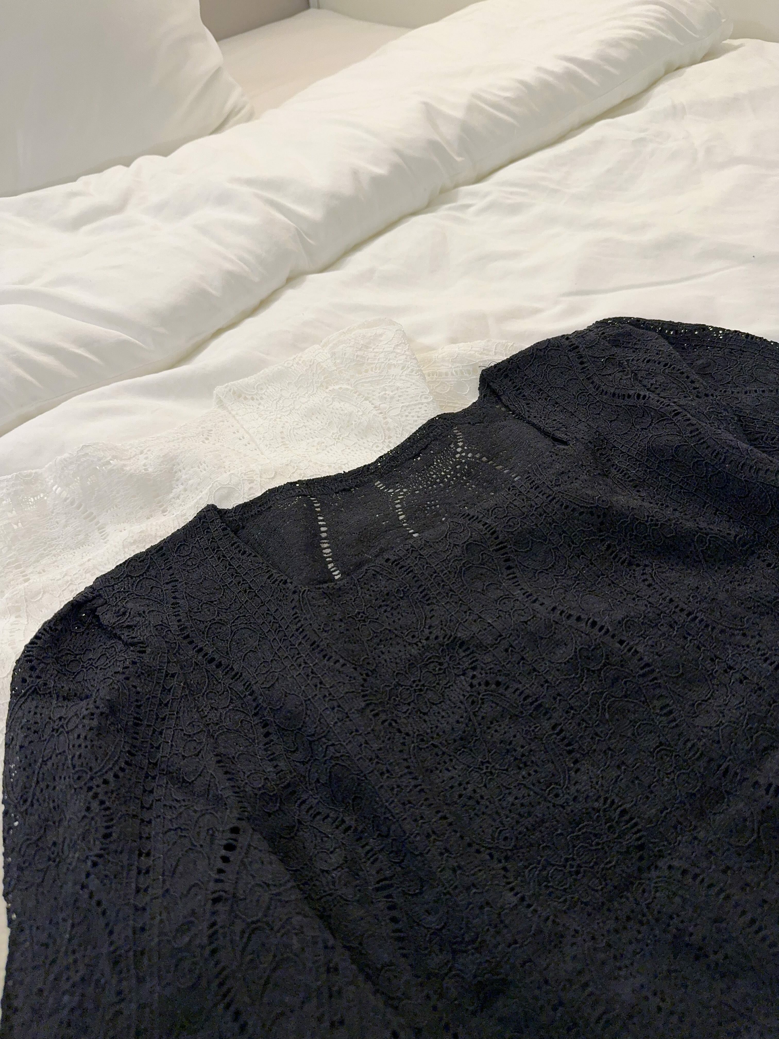 精緻嘅蕾絲布料,唔係普通嘅平紋蕾絲,而係帶有一啲波浪狀嘅花紋設計,唔單止有層次感,仲可以睇到佢嘅質感。