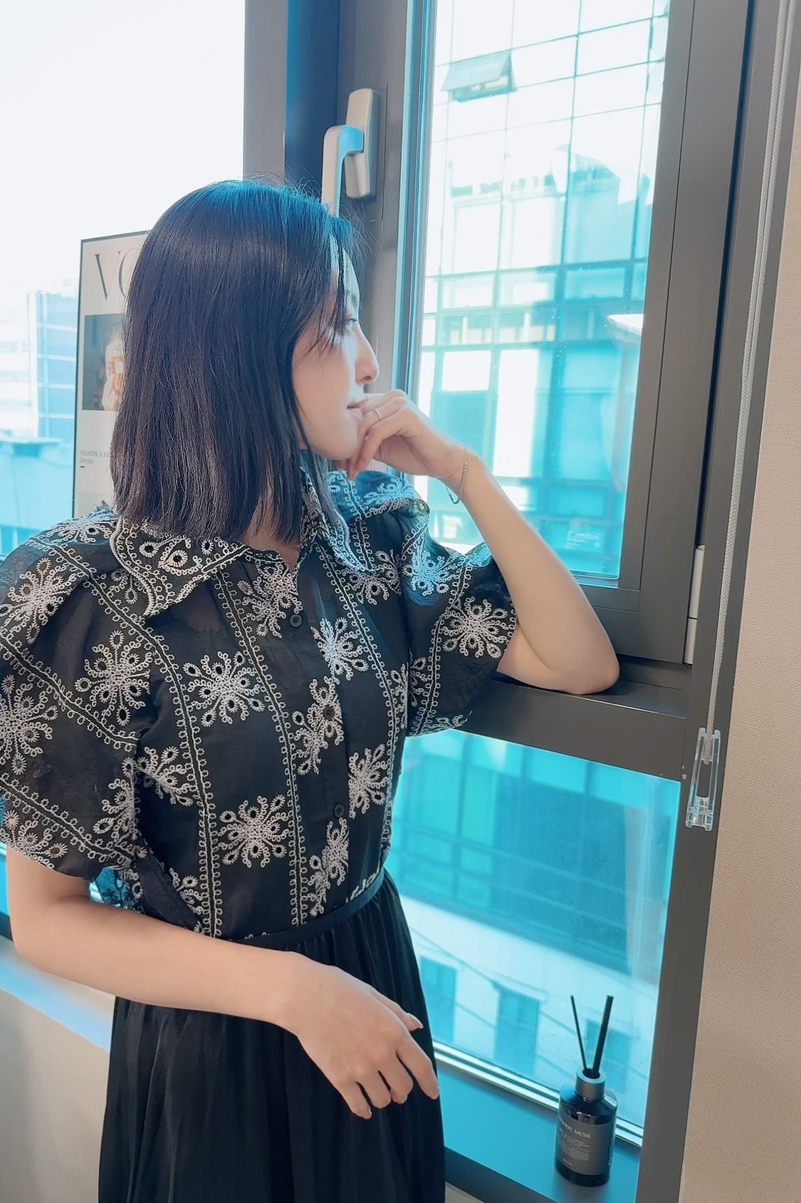 寬鬆的剪裁同泡泡袖,令到整體多咗一份女性化同韓系俏皮感,因為用左超輕薄質地,所以泡泡袖完全唔會誇張