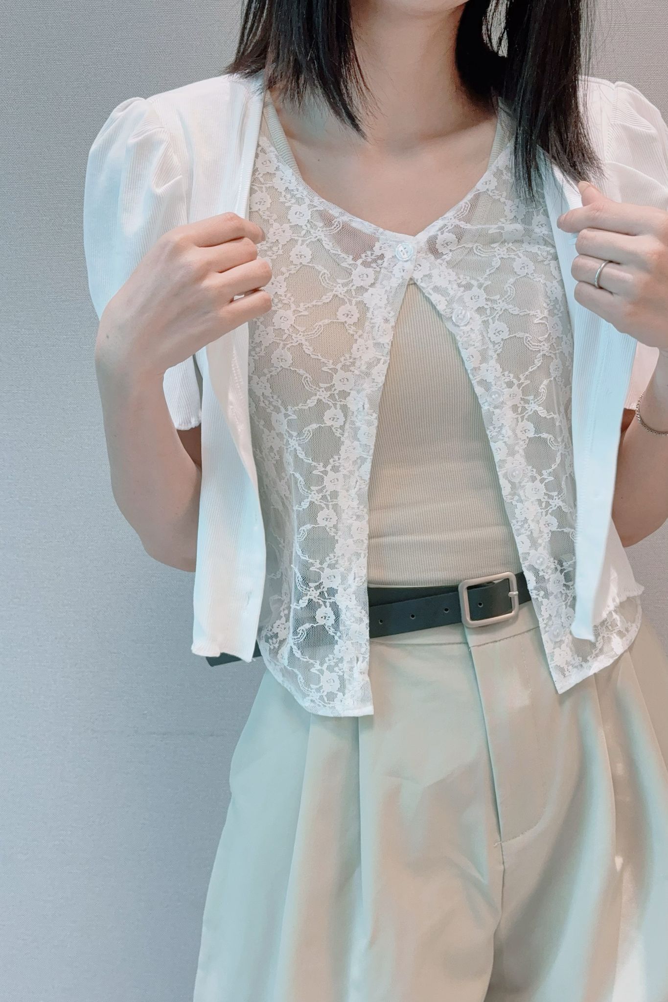 肩13” 袖長9.5” 夾位16” 胸32-38” 腰28-34” 全長17.5-19.5”吋