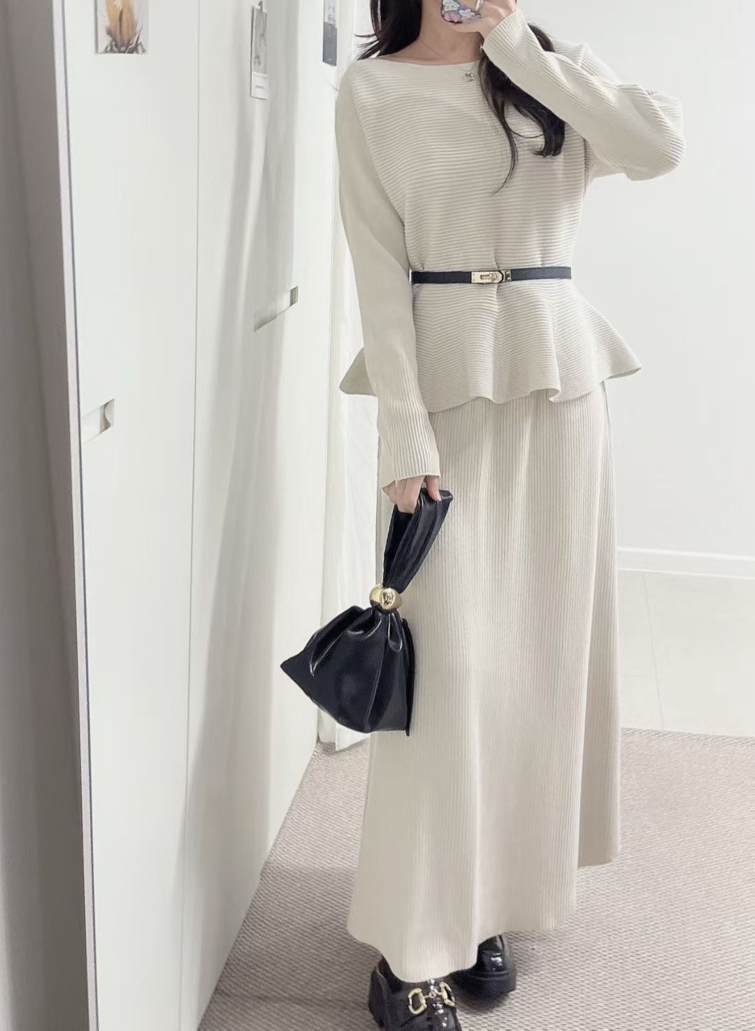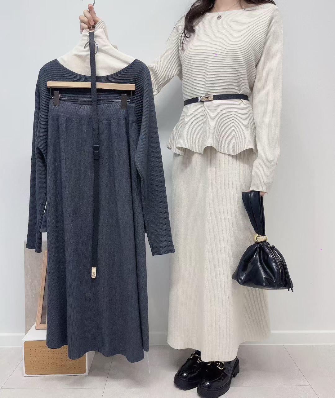 H1011🤎法式知性坑條紋針織套裝