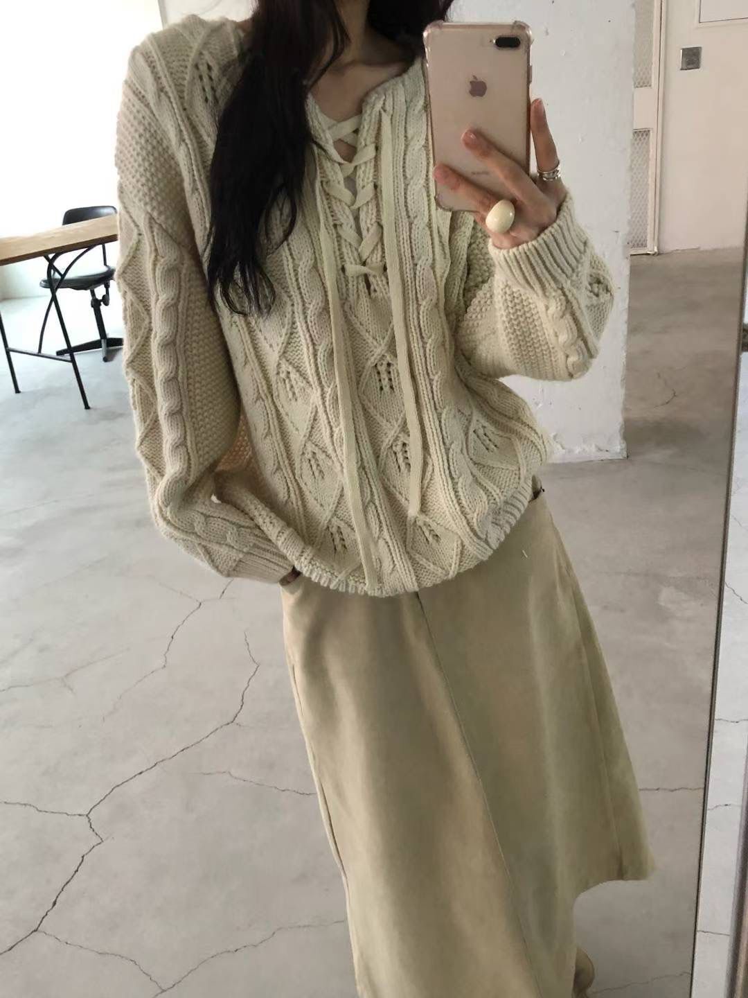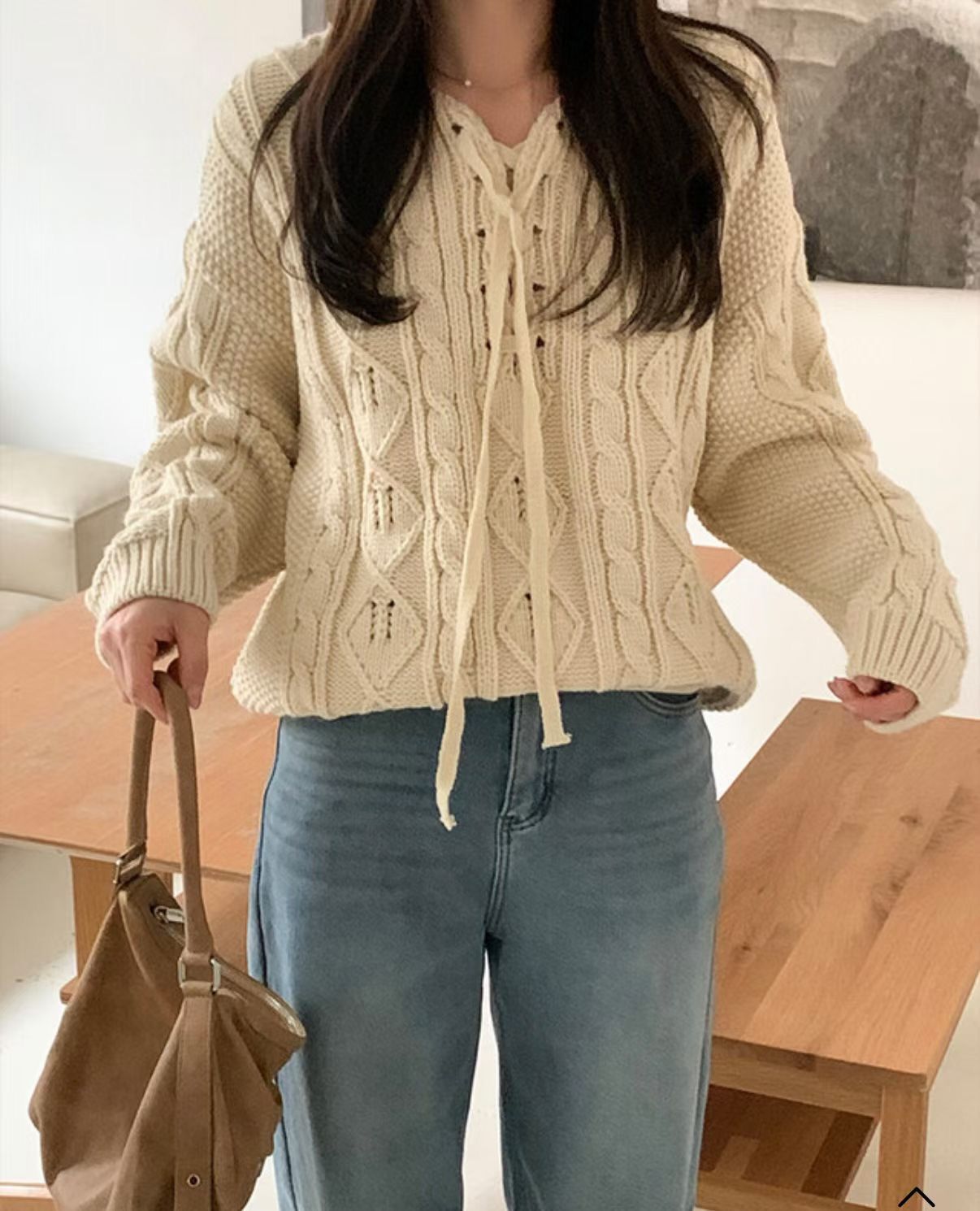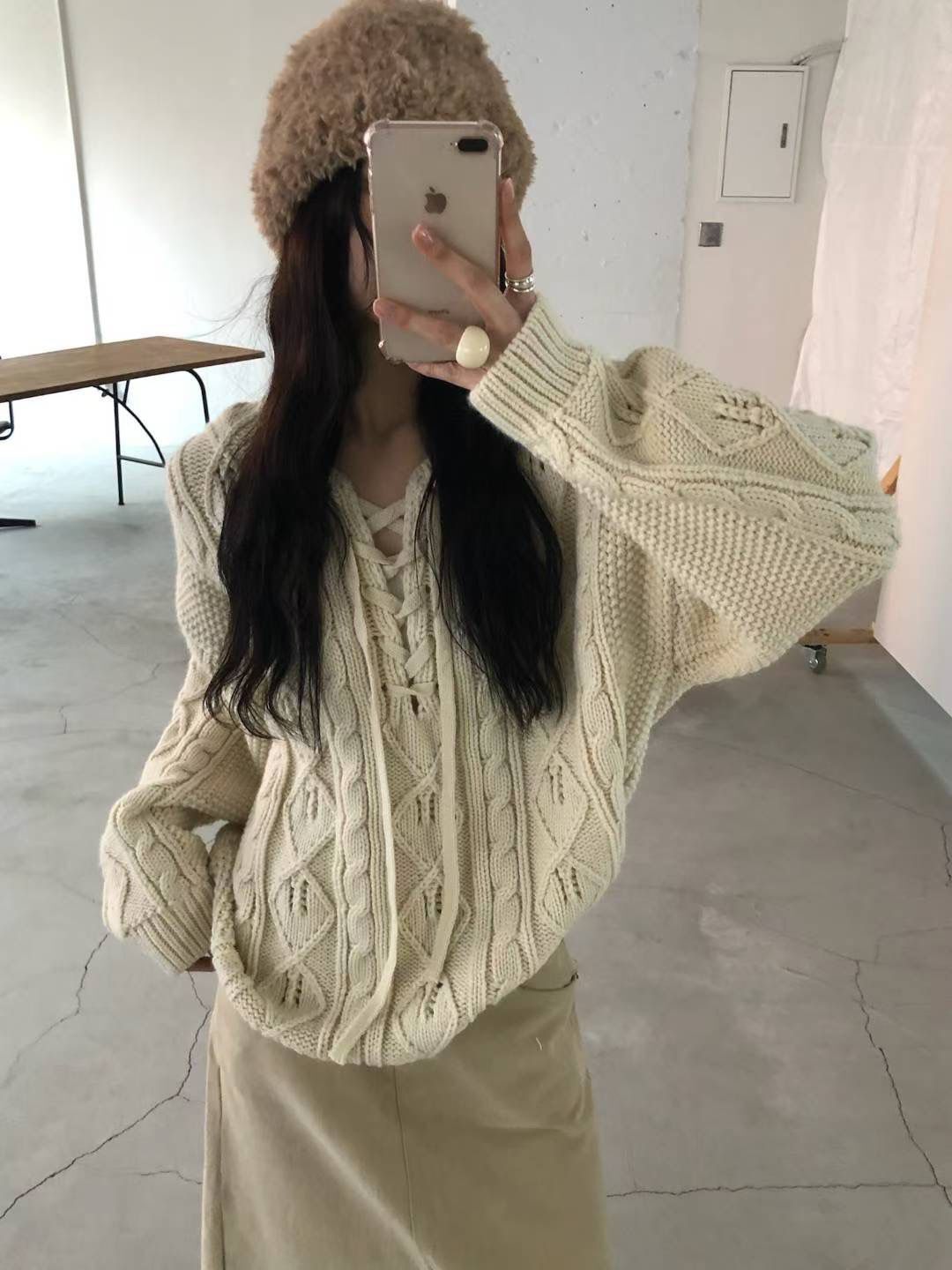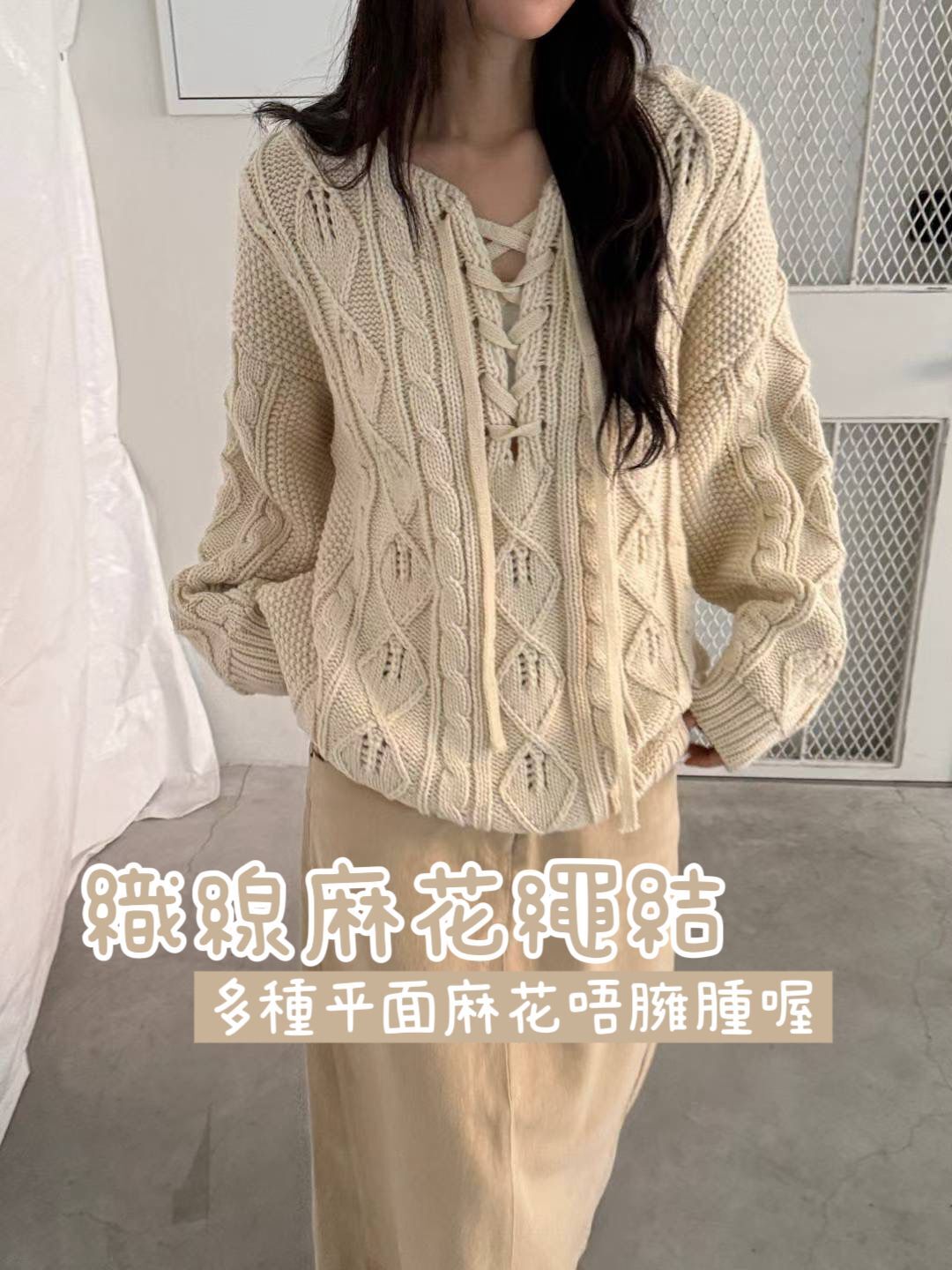 H1021🤎綁帶 V 領麻花針織上衣