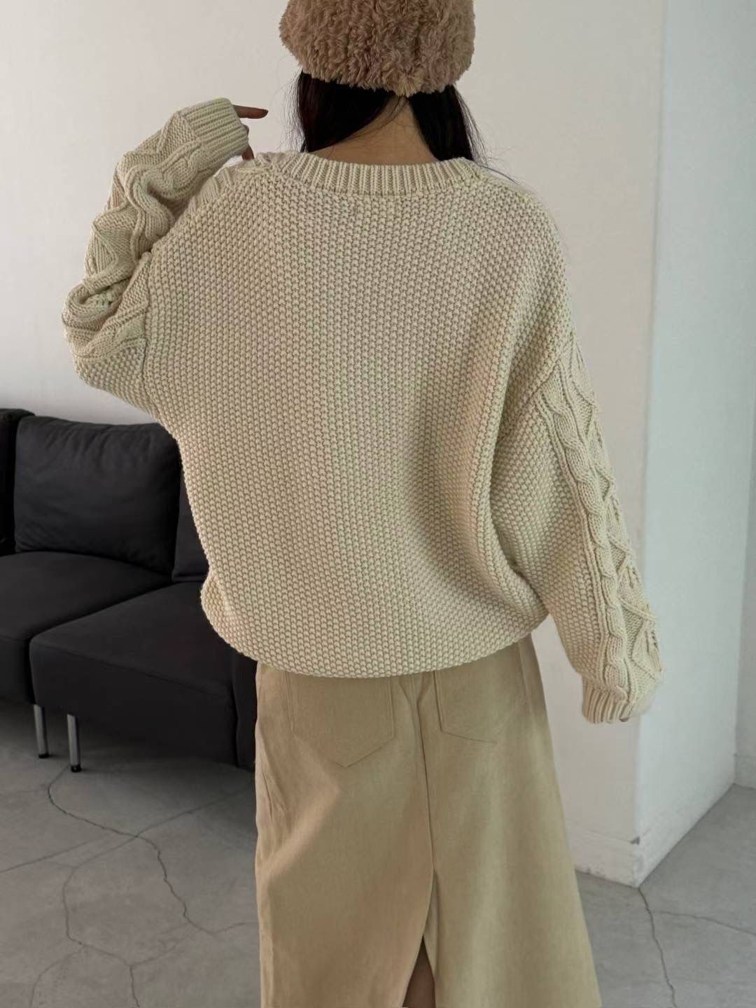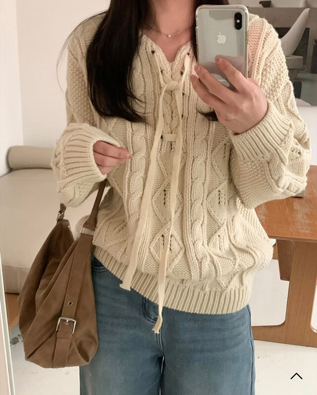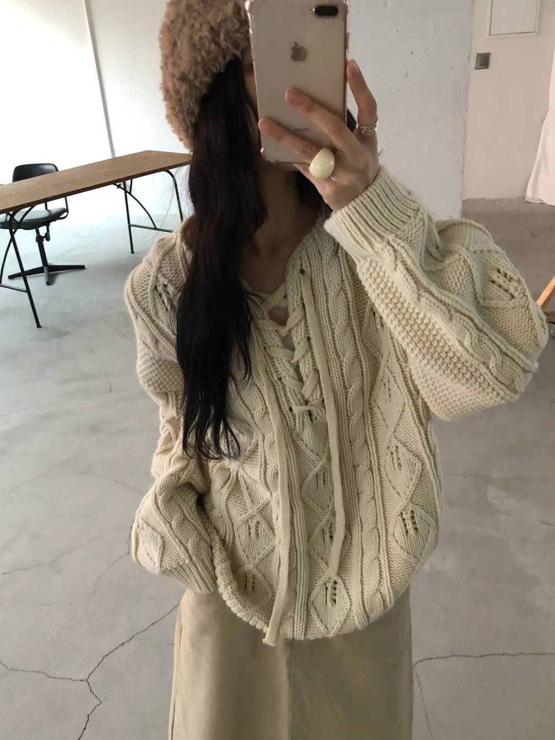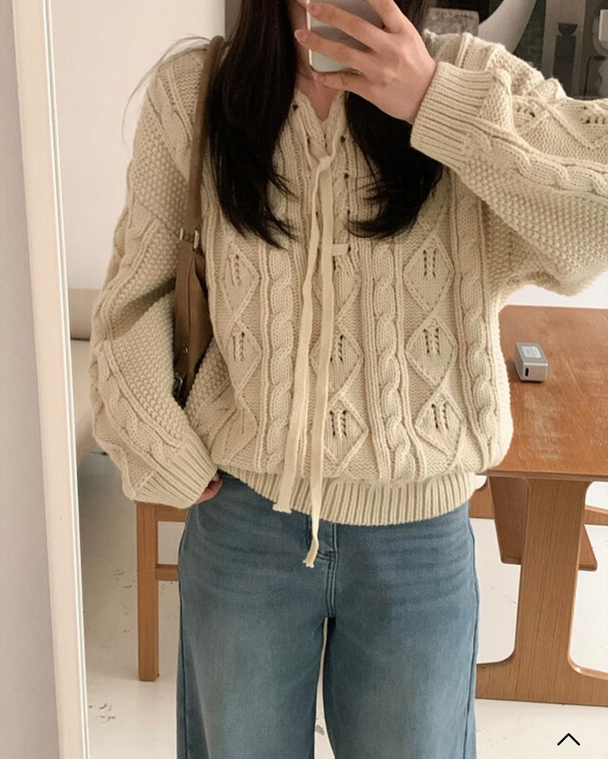 H1021🤎綁帶 V 領麻花針織上衣