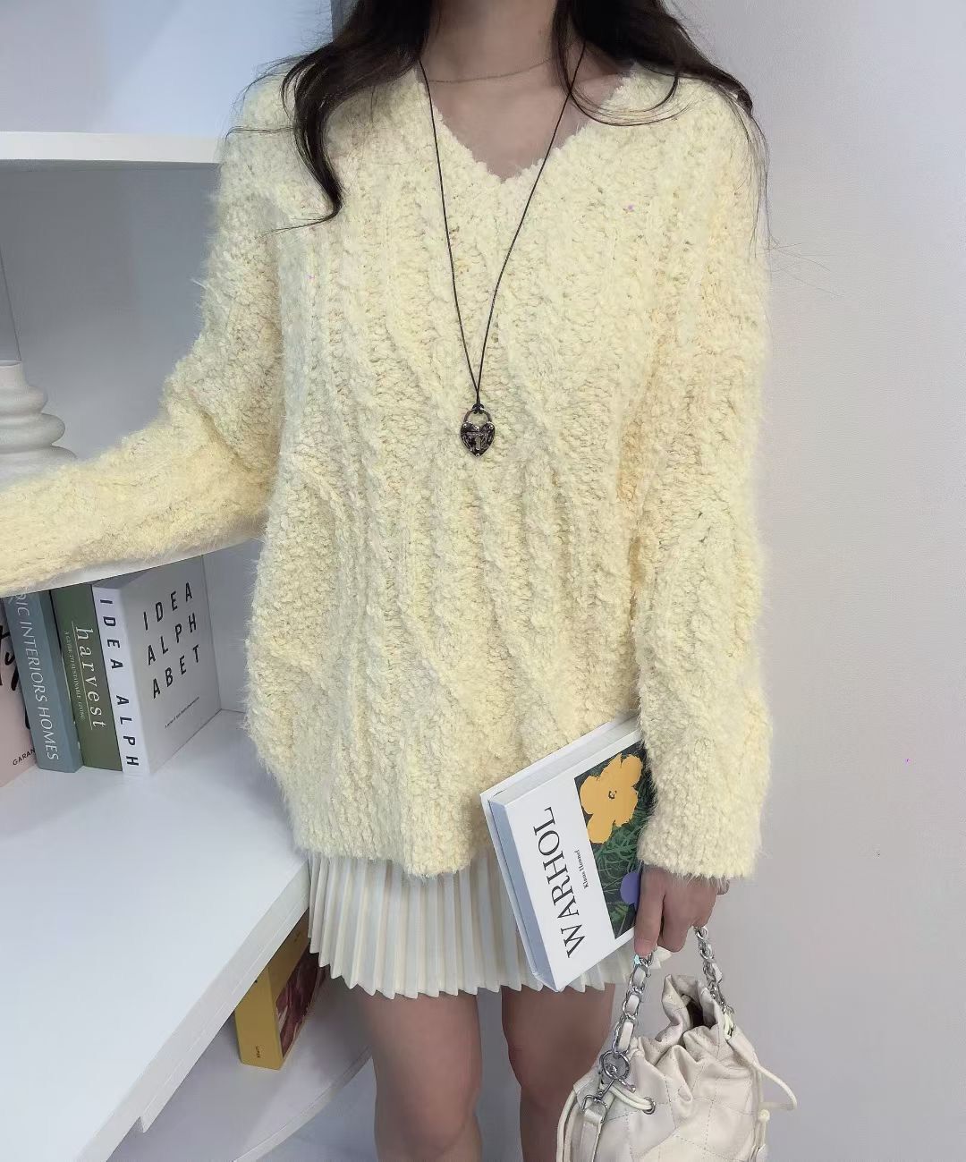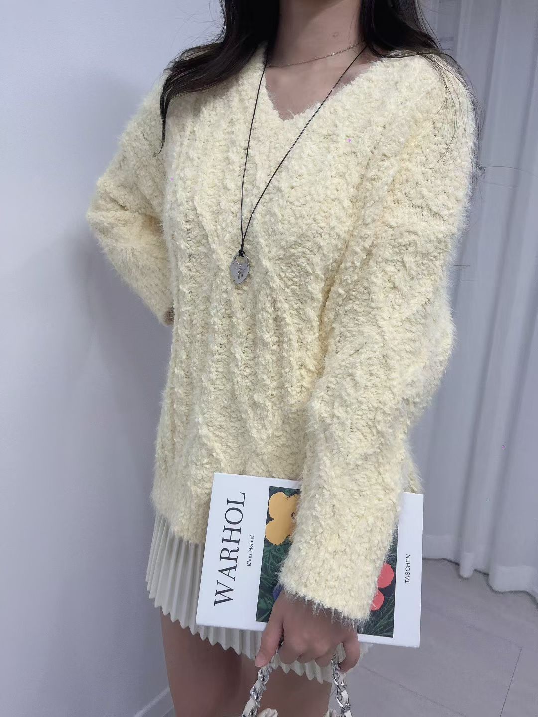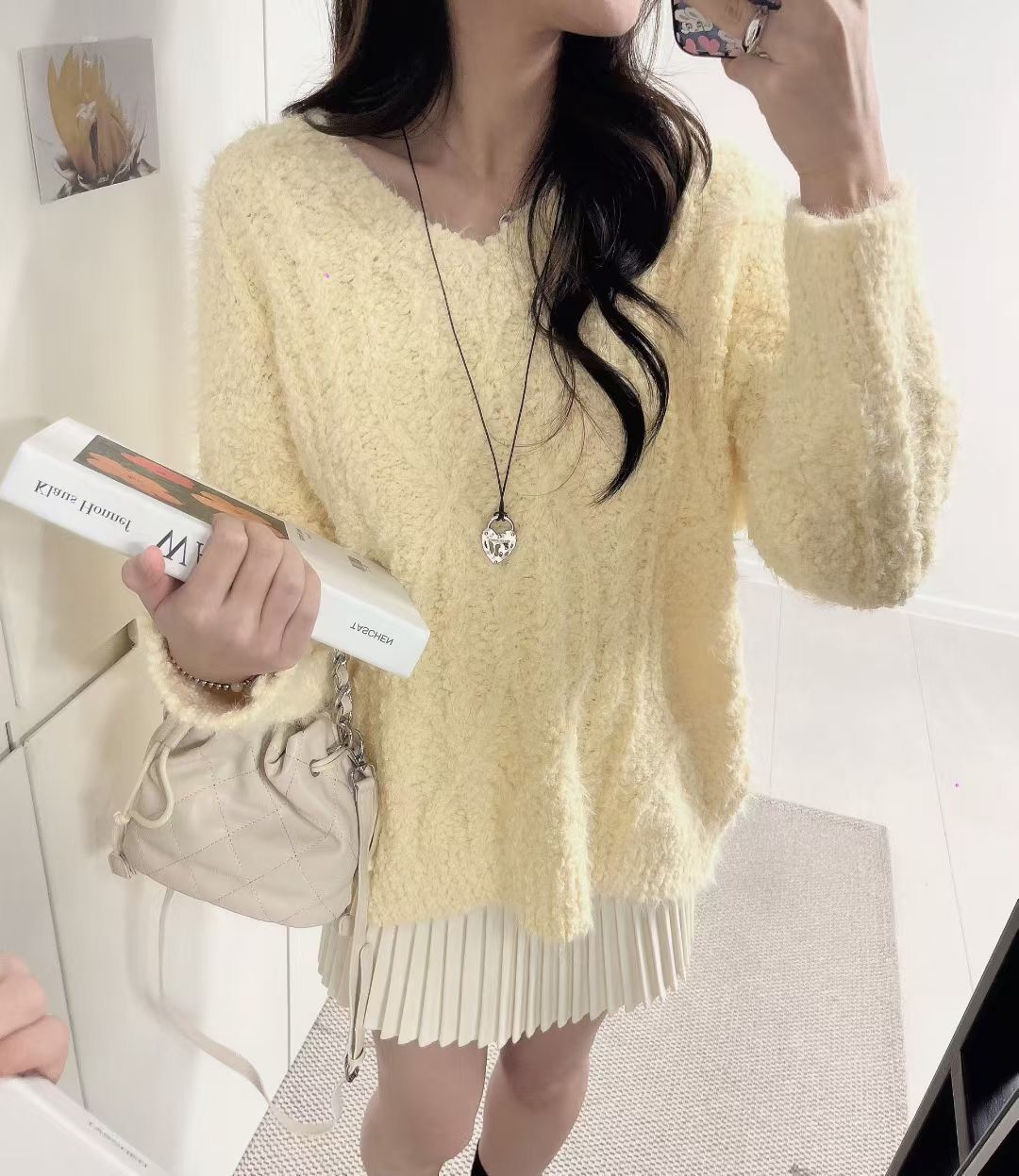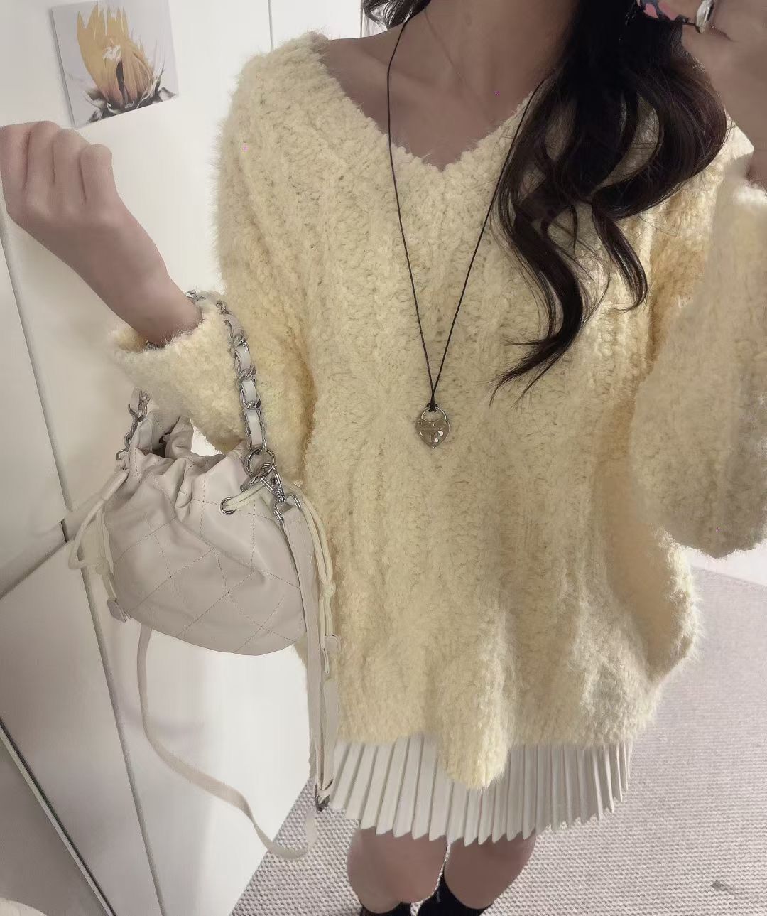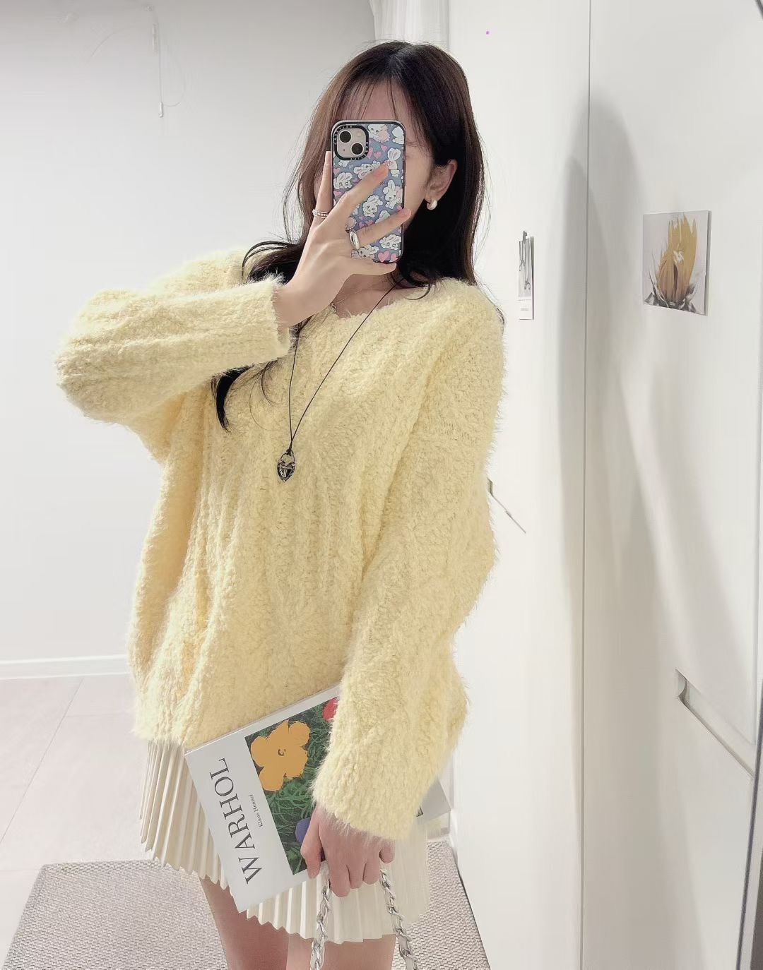 H1023🤎奶油感羽毛紋針織上衣