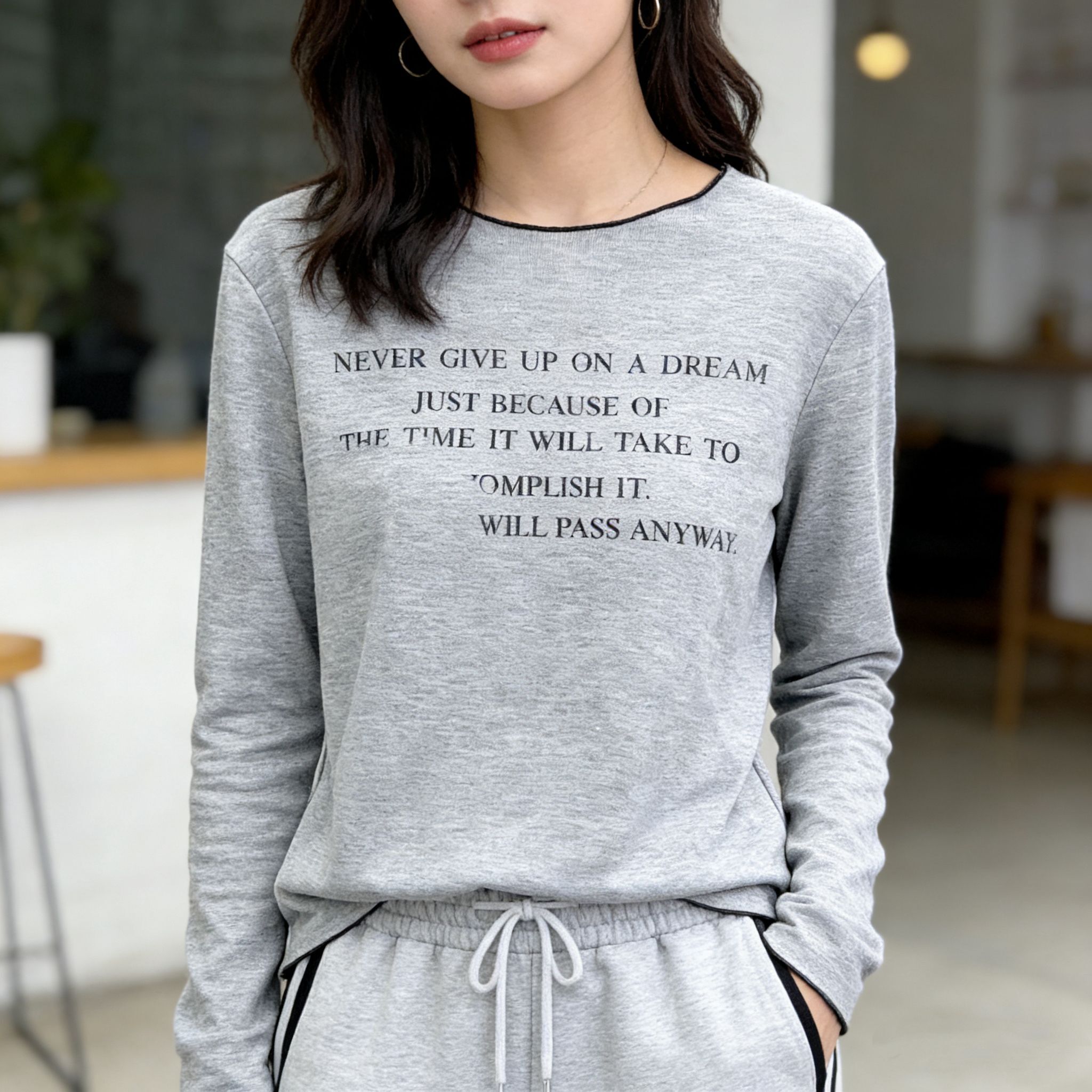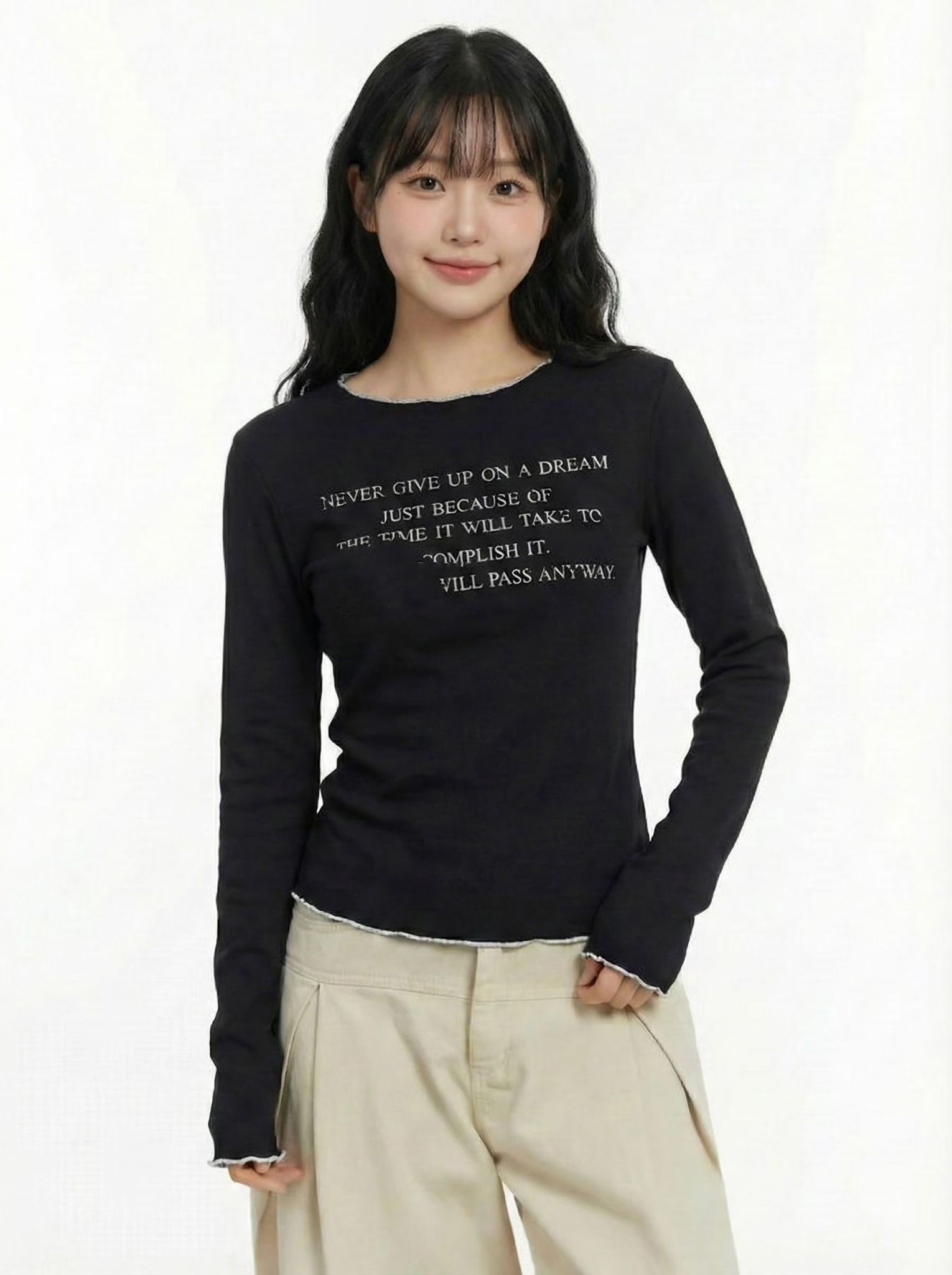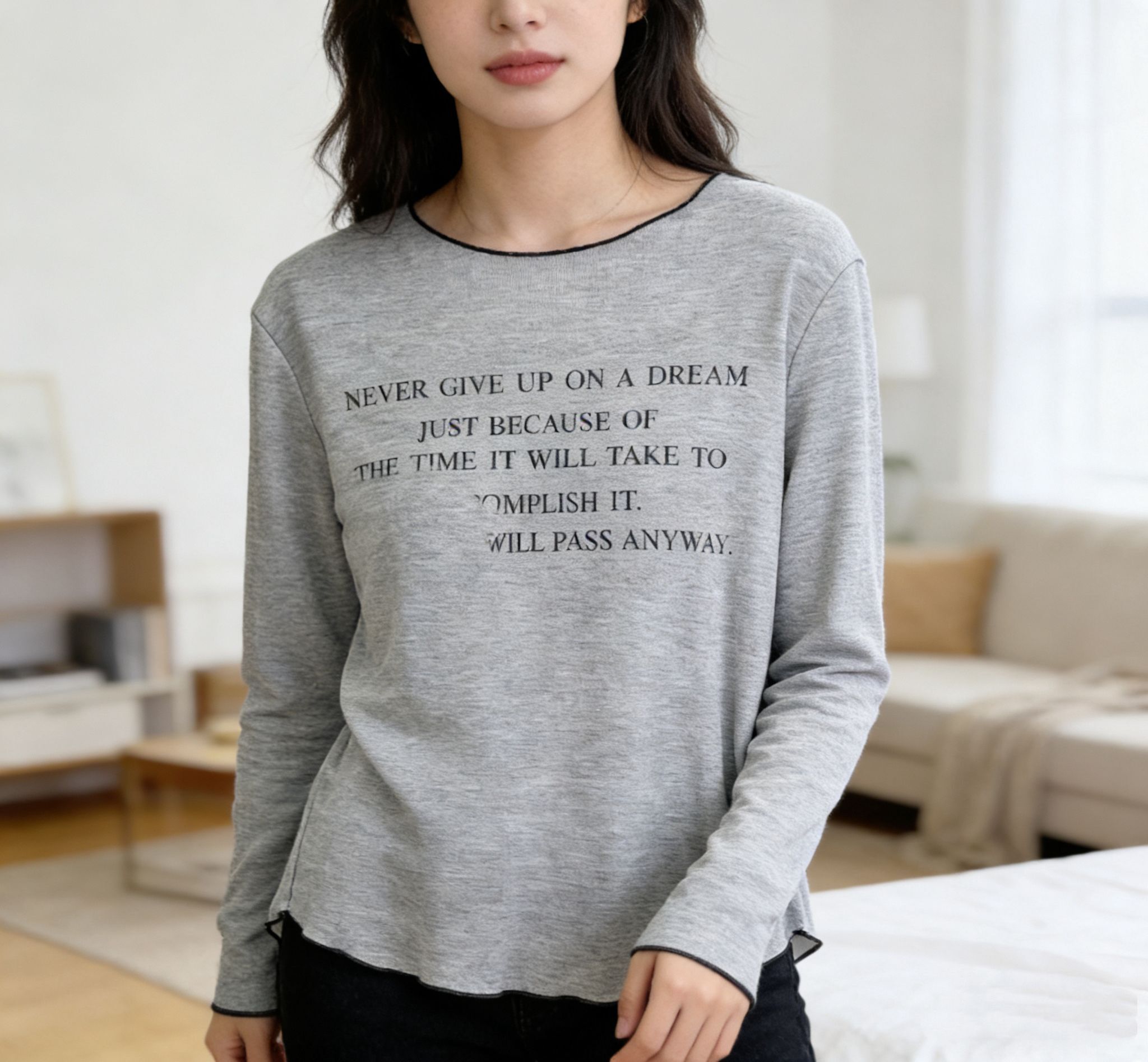 H1024🤎復古標語滾邊長袖Tee