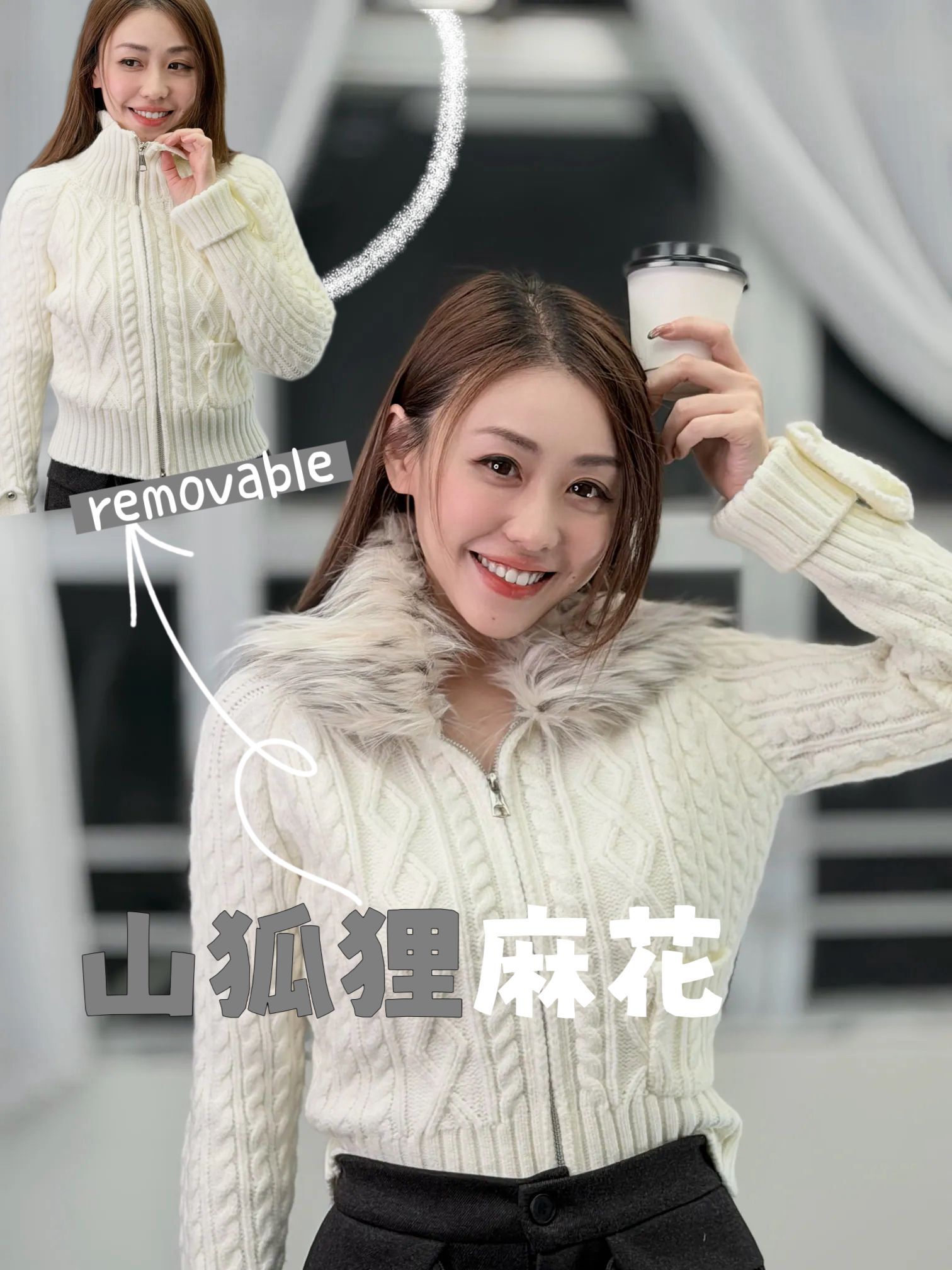 外套 肩袖長23” 夾位17” 胸34-44” 腰28-38”全長18”吋(毛領可拆)