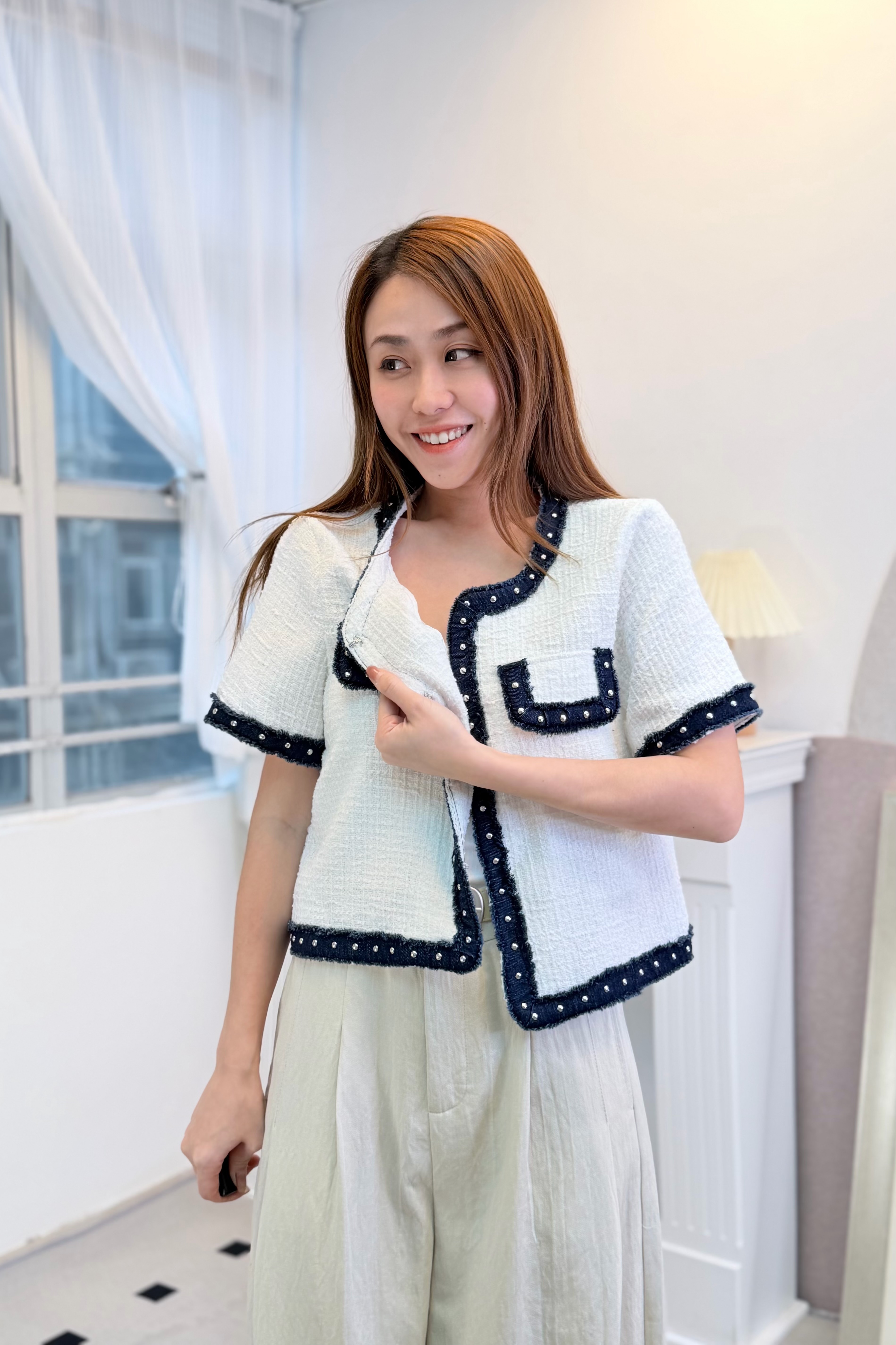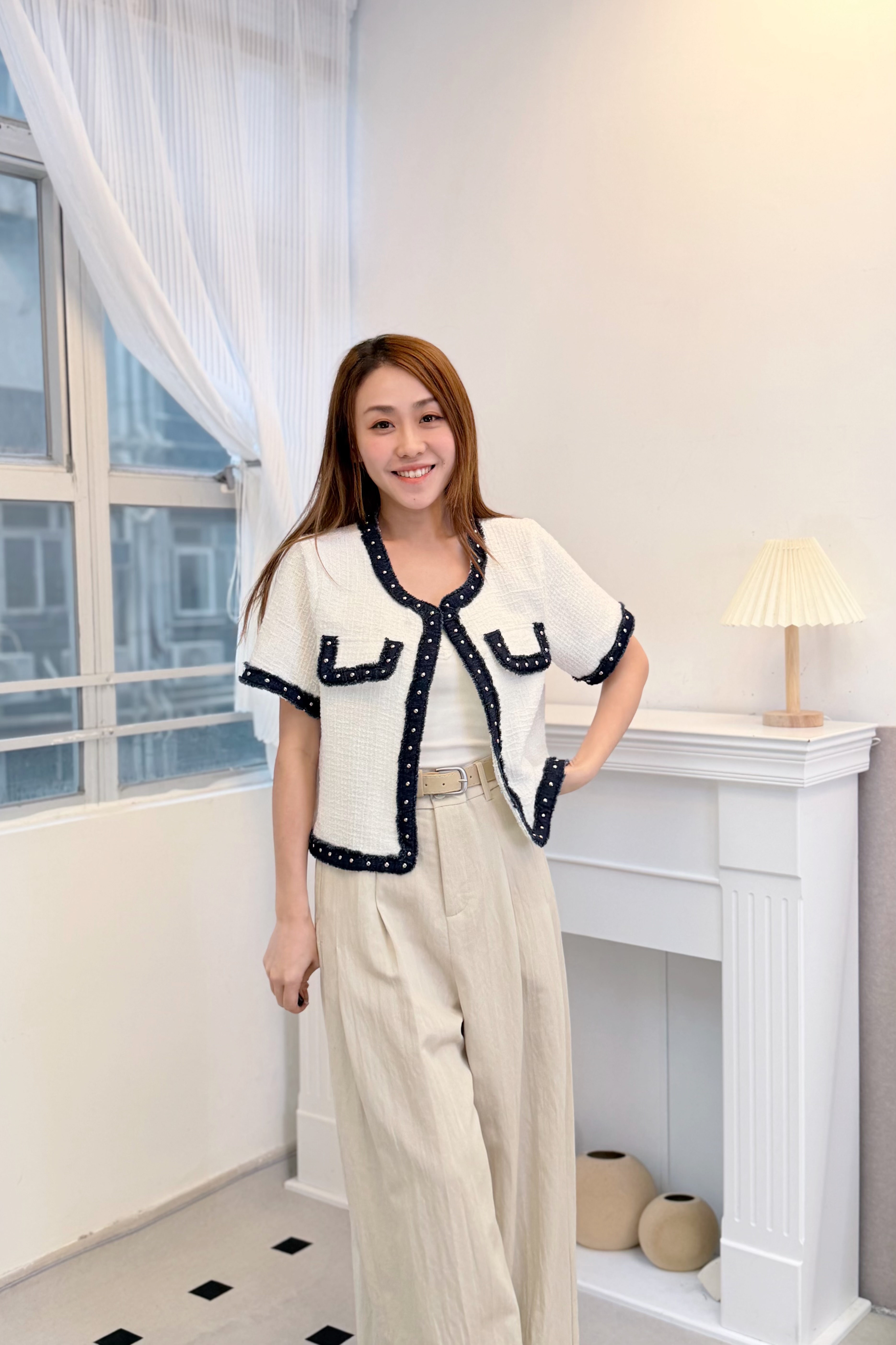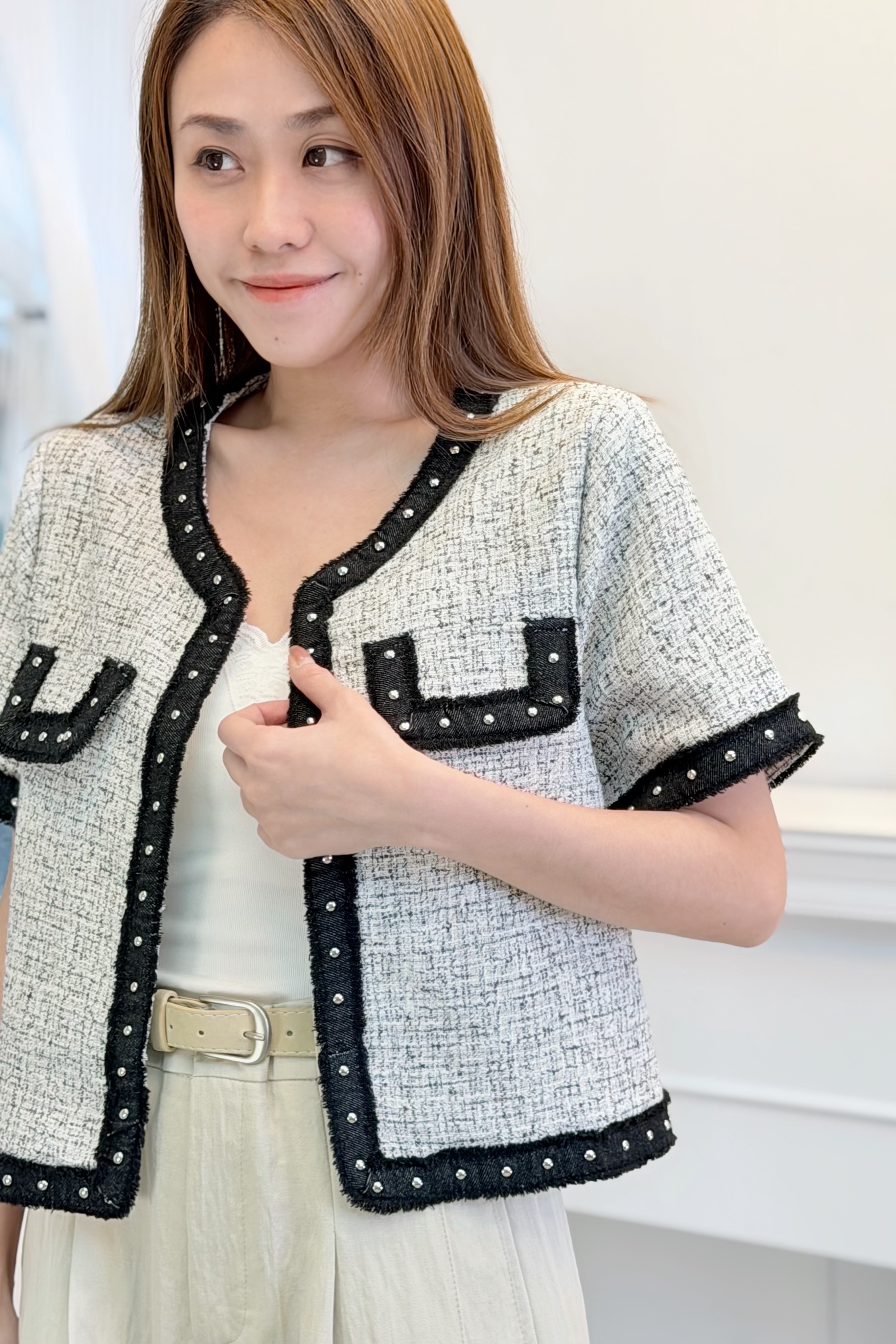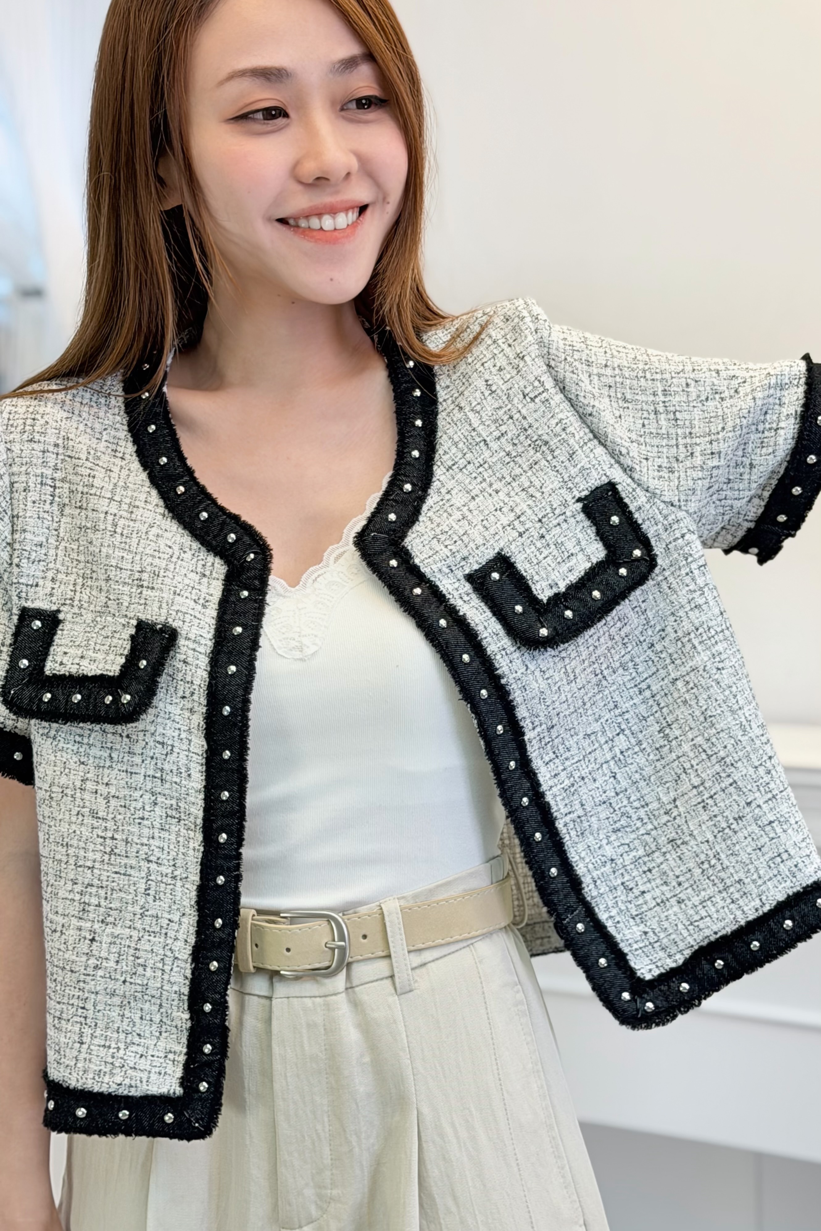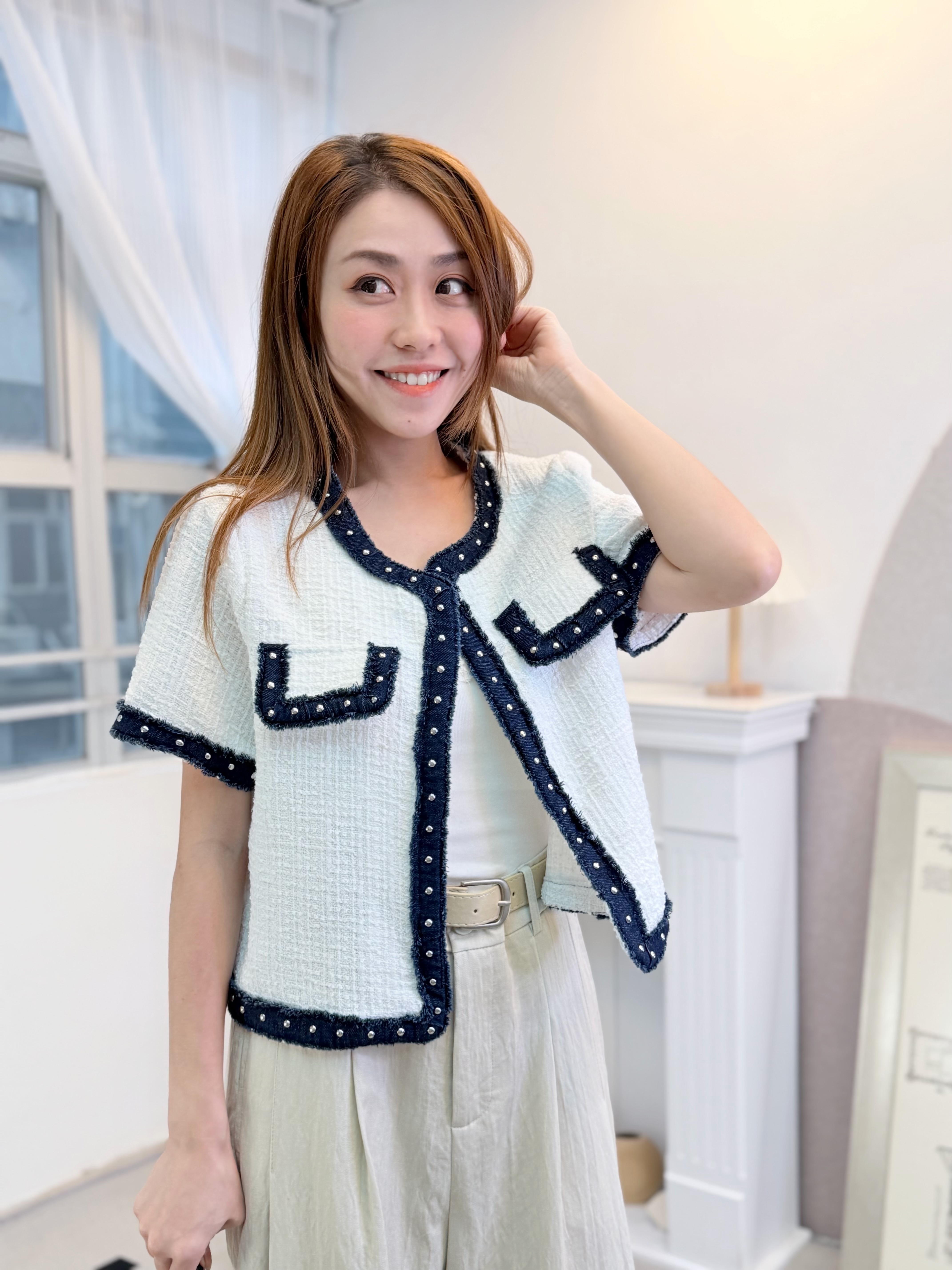 外套 肩15‘’袖長8.5‘’ 夾位19” 胸38” 腰38‘’長19”吋