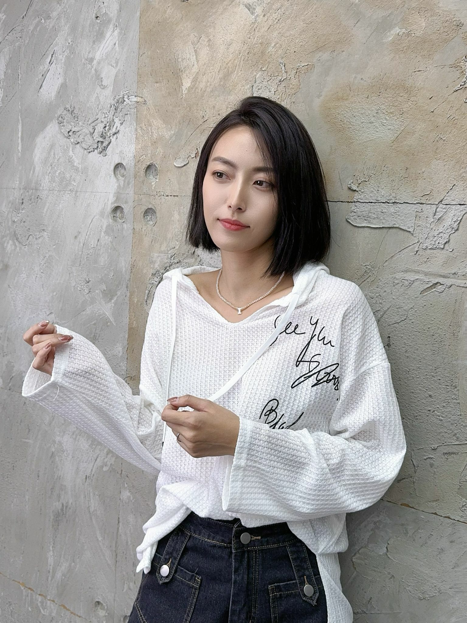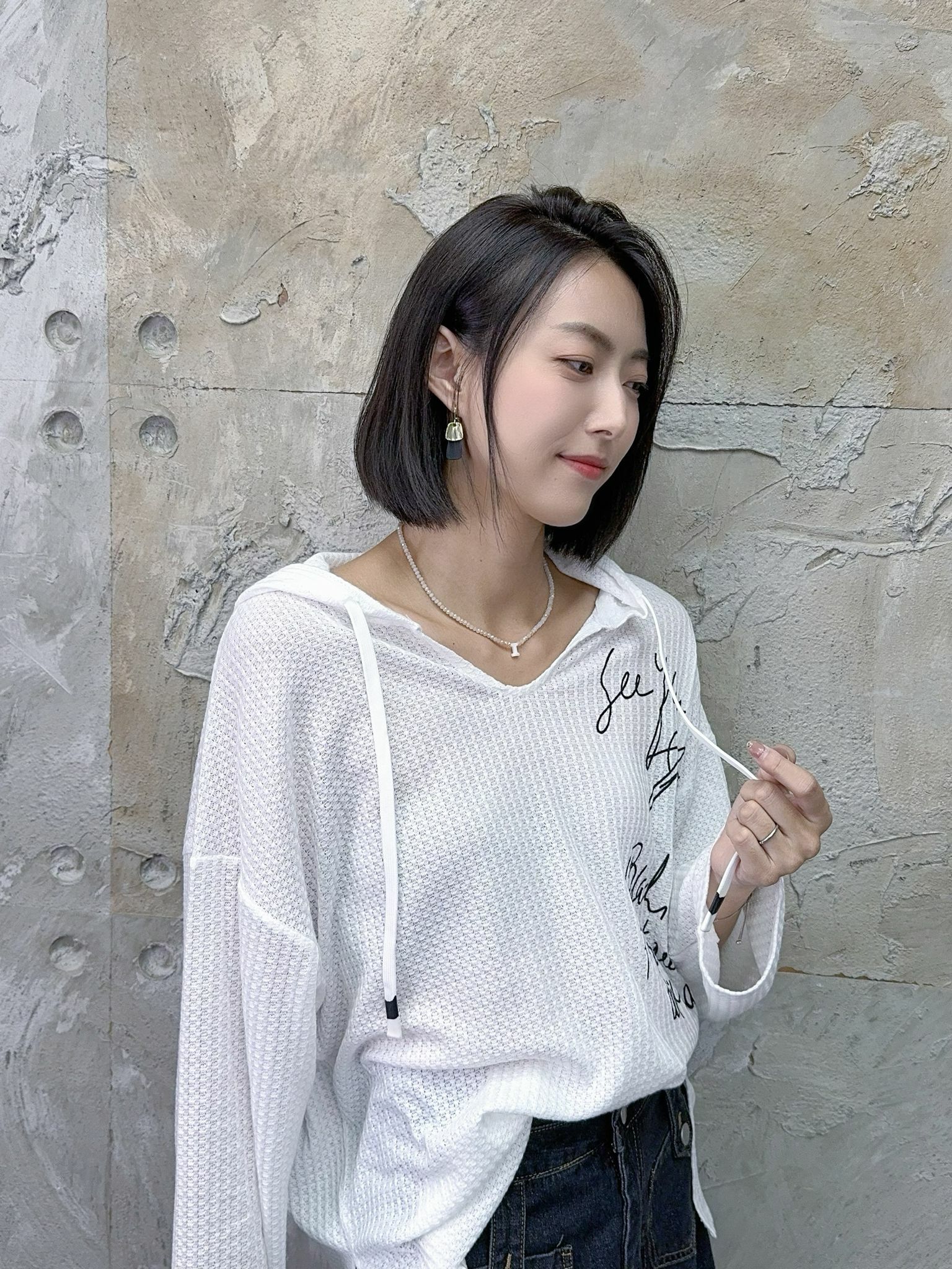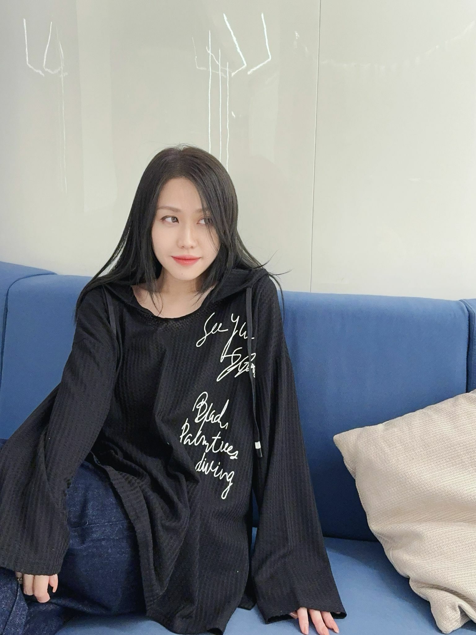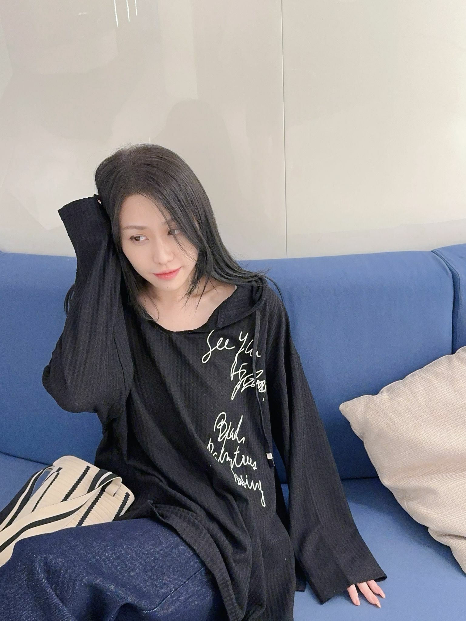 唔啱身嘅少許Over size蝙蝠袖薄身hoodie版型設計隨意就著到個性感覺