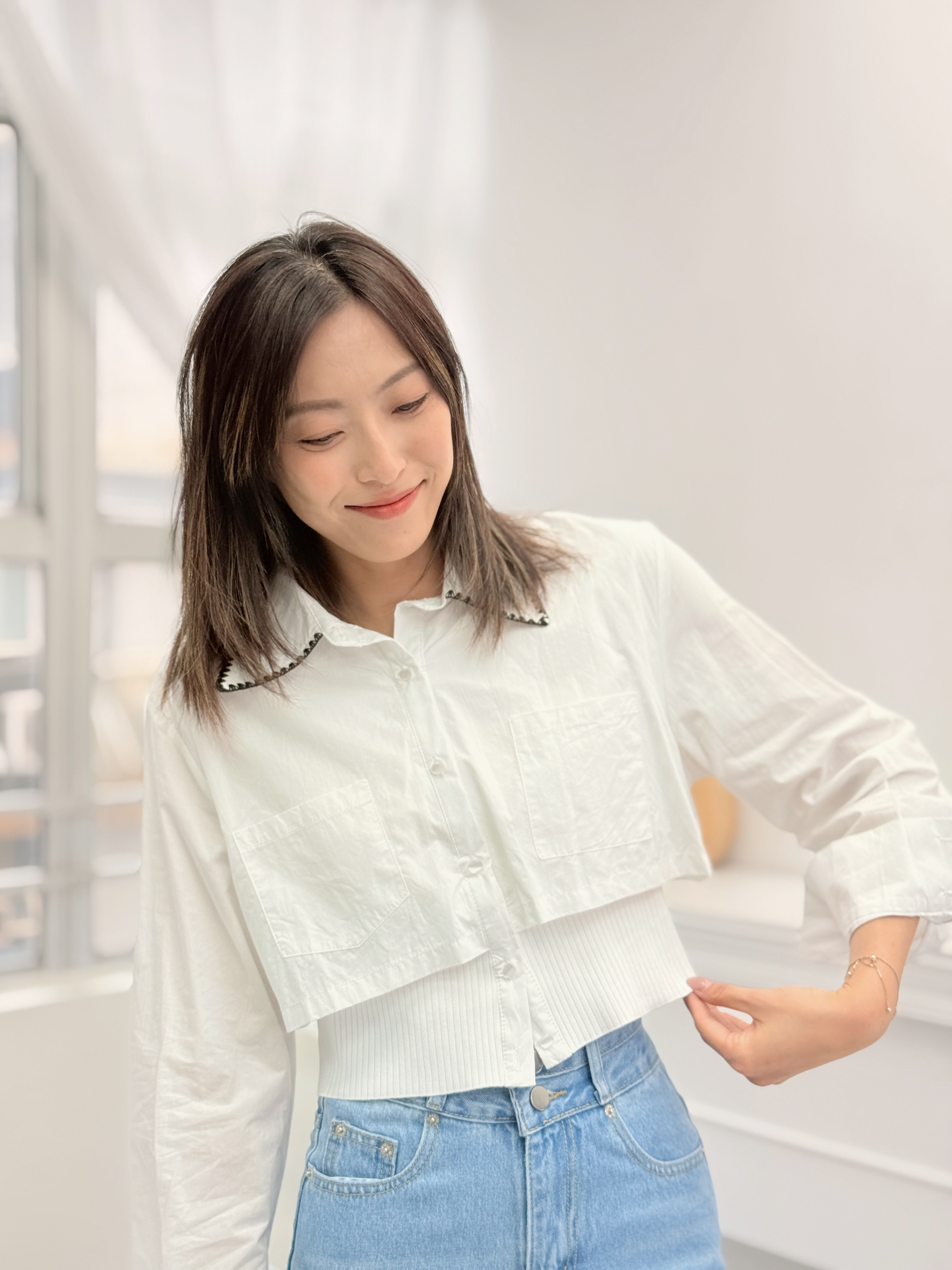 上衣 肩17.5‘’袖長23‘’ 夾位18” 胸36” 腰28-32” 長17”吋