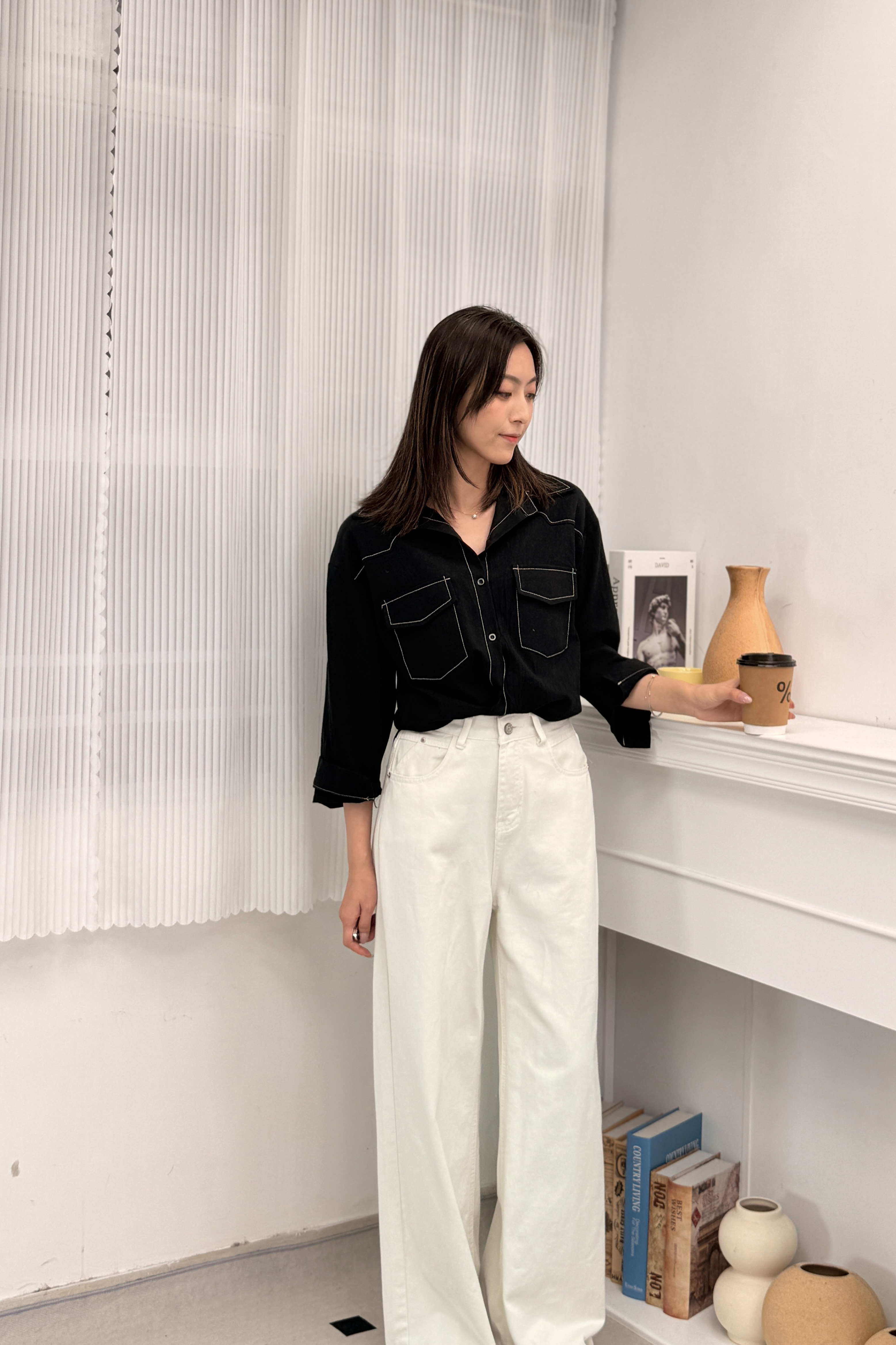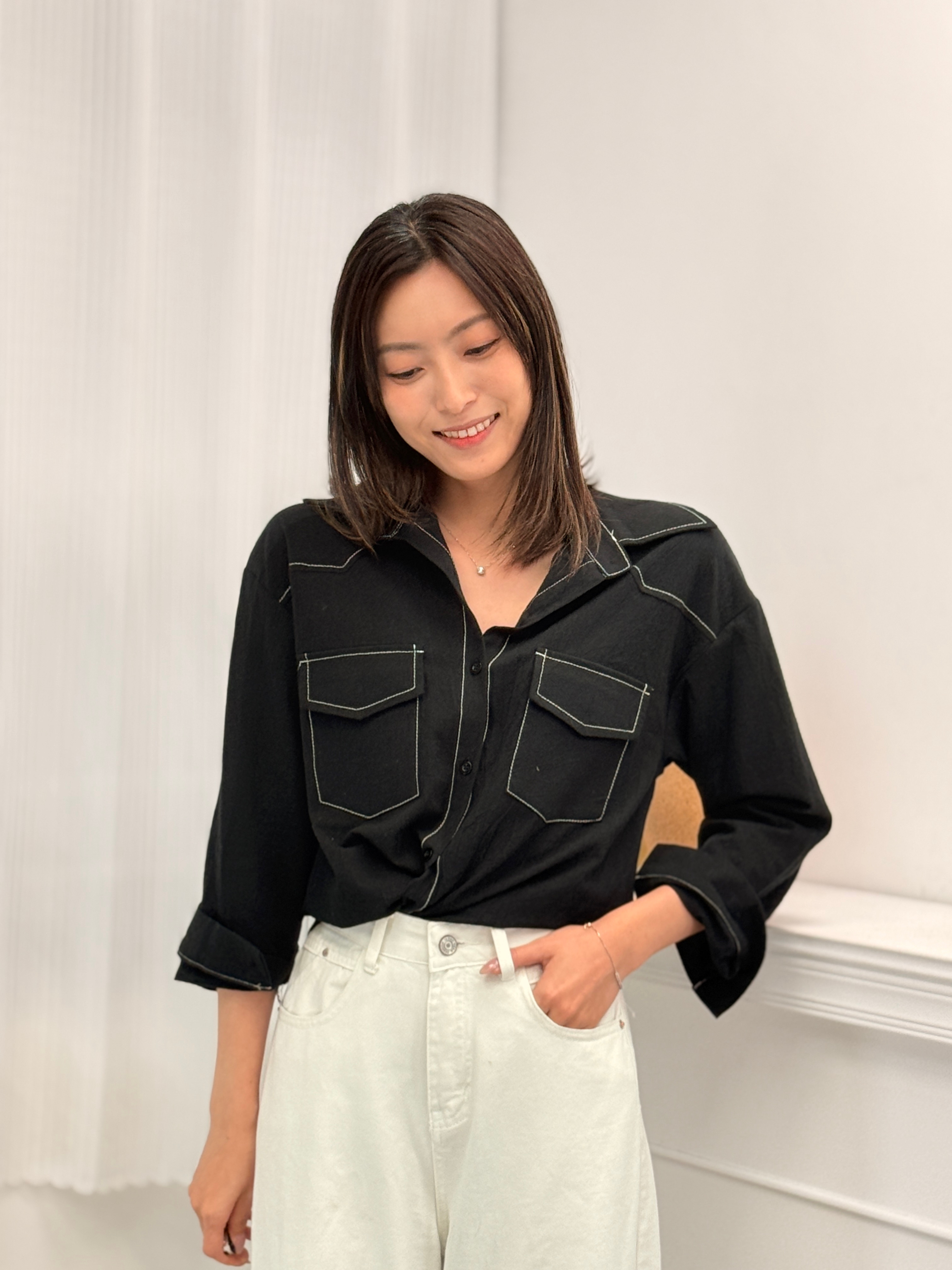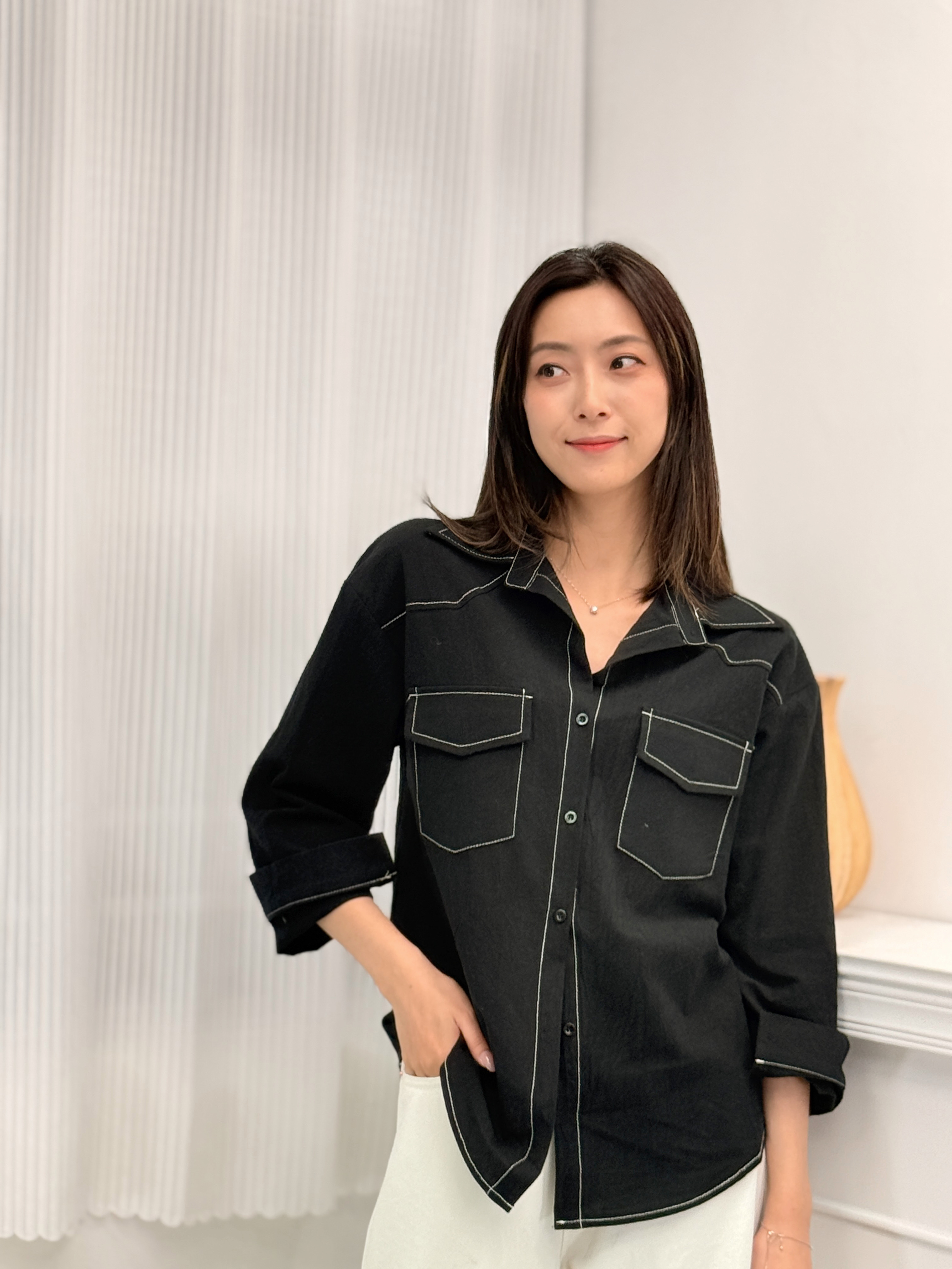 上衣 肩19.5‘’袖長19.5‘’ 夾位17” 胸37” 腰37” 長27-29”吋